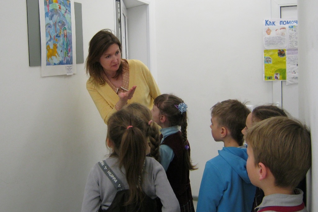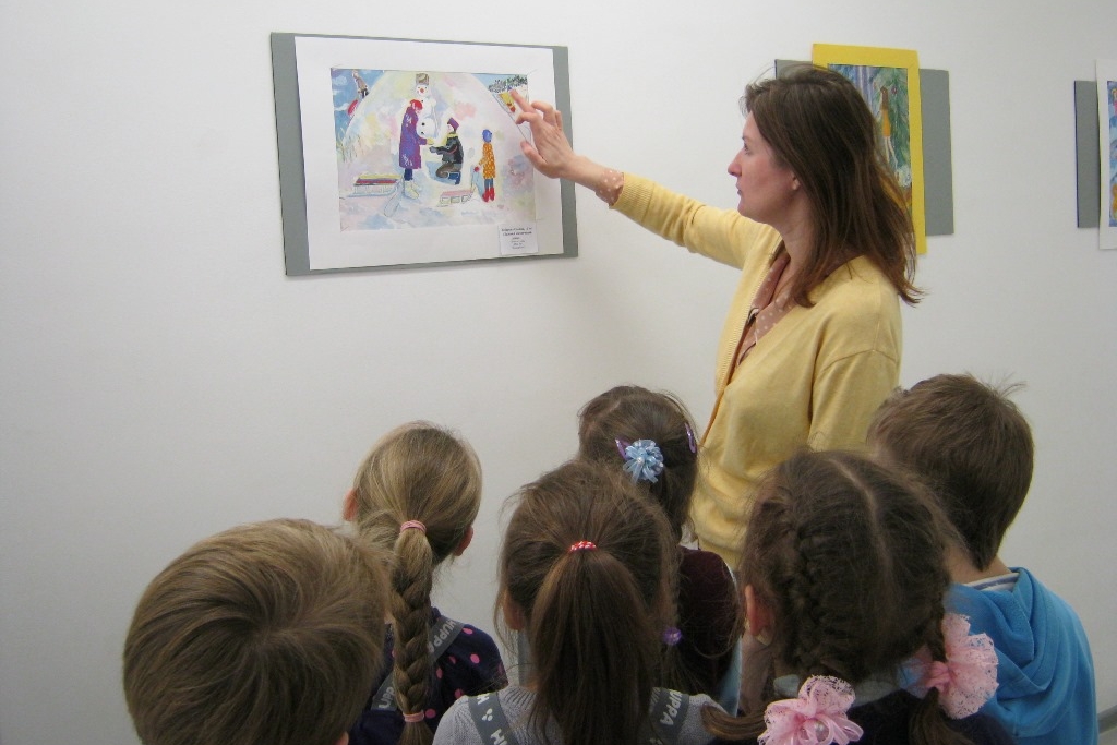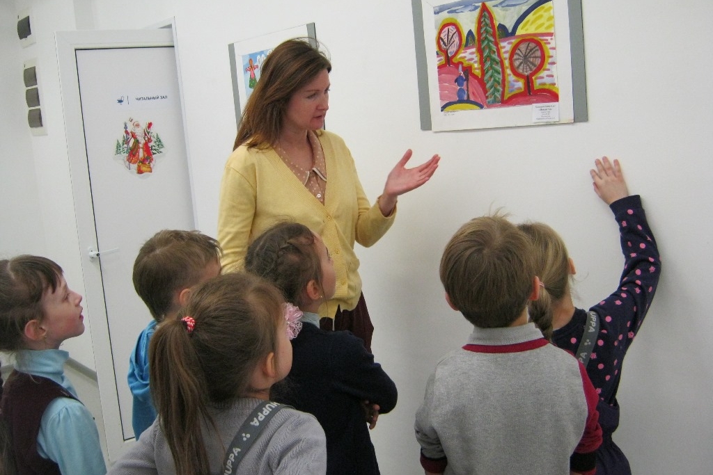 Эту подборку детской зимней графики для выставки в библиотеке сделала директор Детского музея ПГКГ, художница Ольга Асаевич. Детвора из ЦРТДиЮ прогулялась по выставке: обсудили, какие работы «громкие», а какие «тихие», какие прямолинейные, то есть, что написано то и нарисовано, а какие работы можно разгадывать.