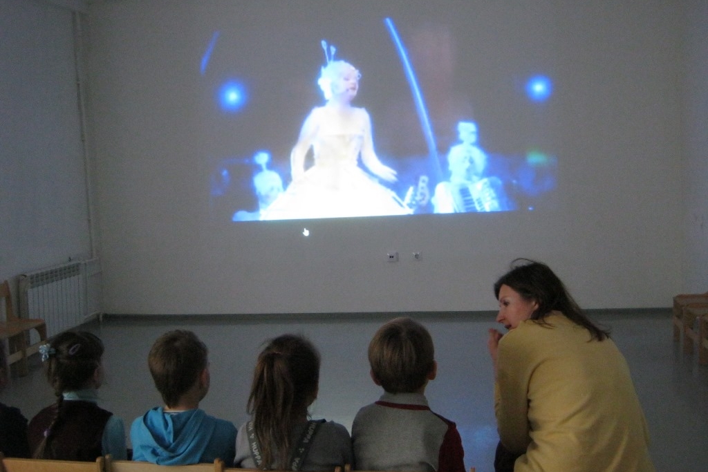 После прогулки по выставки детвора на детском абонементе познакомились с примерами иллюстрации детских книг «Библиотеки Деда Мороза». Занятие для маленьких художников продолжилось в кинозале. Там они послушали Белую певицу Цирка дю Солей — Франческу Ганьон. И посмотрели чудесный анимационный фильм Вероники Федоровой «Король забывает».