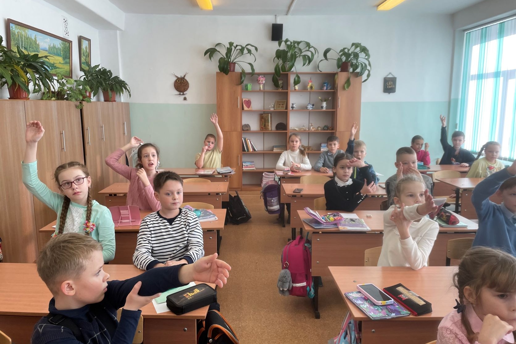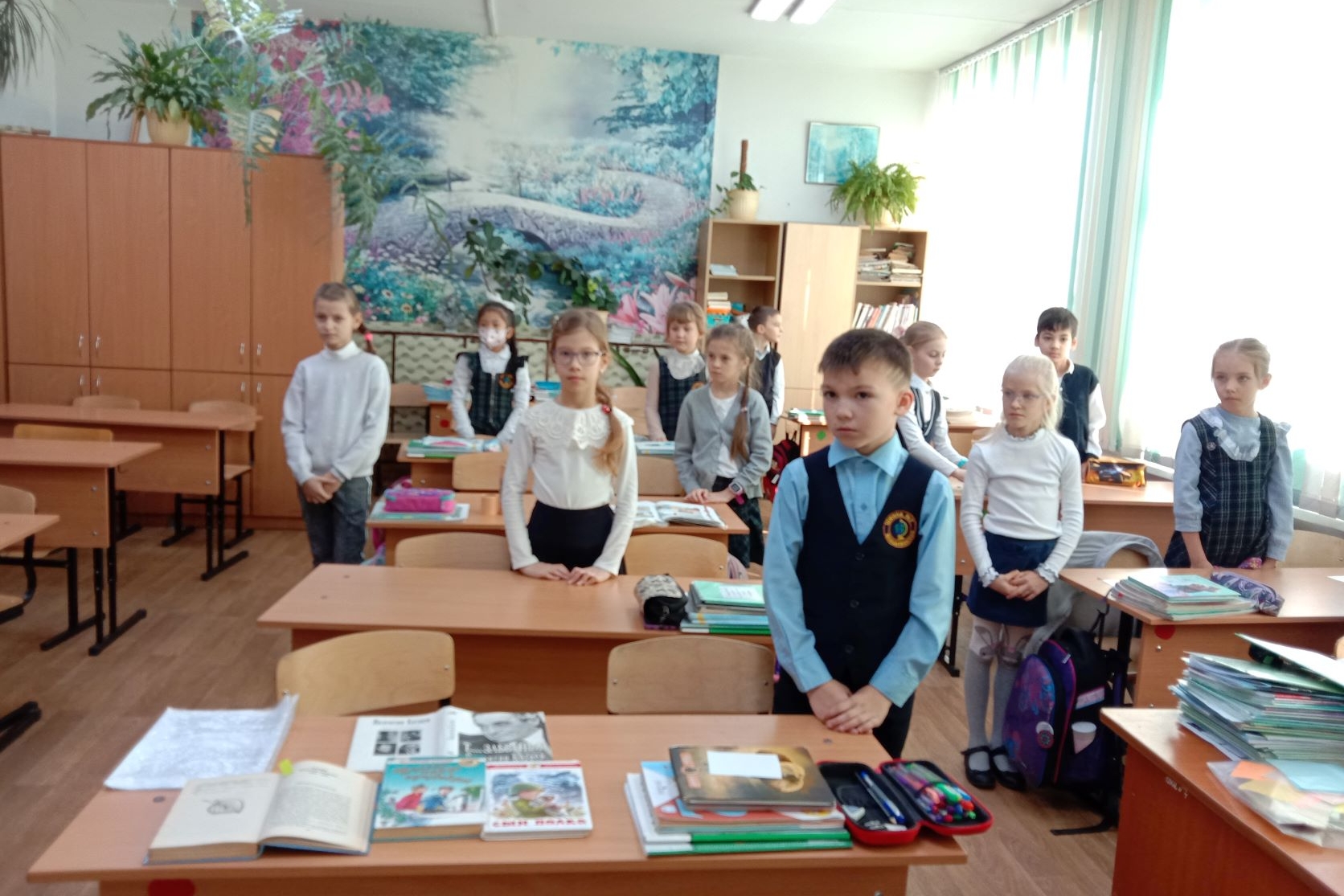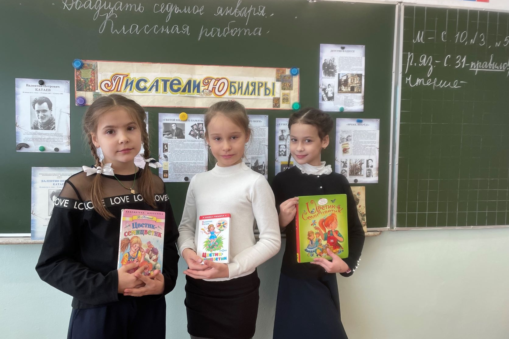 Встреча закончилась совместной фотографией детей на фоне школьной доски, на которую прикрепили лепестки с детскими пожеланиями.