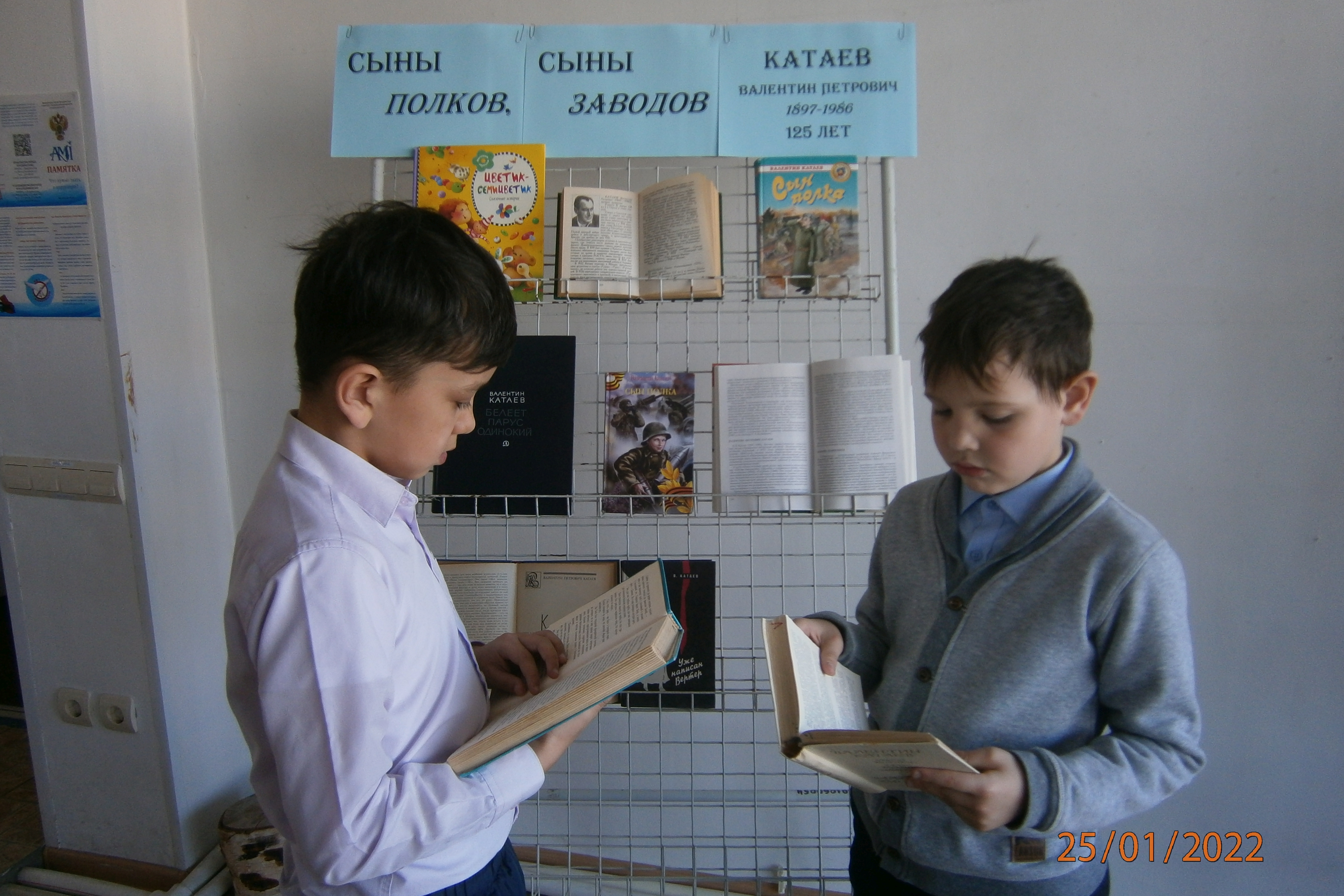 В течение прошедшей недели в библиотеках организованы книжные выставки, на которых представлены книги Валентина Катаева. В библиотеке № 3 это выставка-размышление «Сыны полков, сыны заводов». В 39 лет (1936 г) Валентин Петрович написал роман для подростков «Белеет парус одинокий», главными героями которой стали одесские мальчишки, которые оказываются в водовороте революционных событий 1905. Увлекательный сюжет, героизм подростков, живописность описания жизни в городе детства Одессе сделали это произведение одной из любимых детских книг. Самая знаменитая у подростков повесть «Сын полка» — о судьбе мальчика-сироты, усыновленного боевым полком. За нее он получил Сталинскую премию.