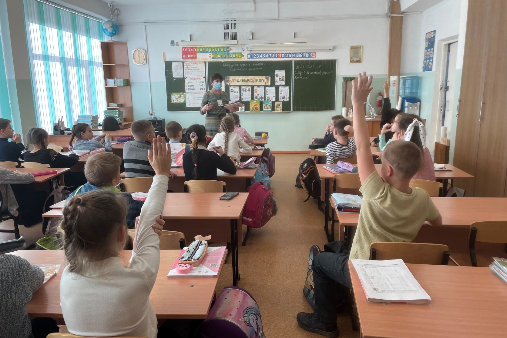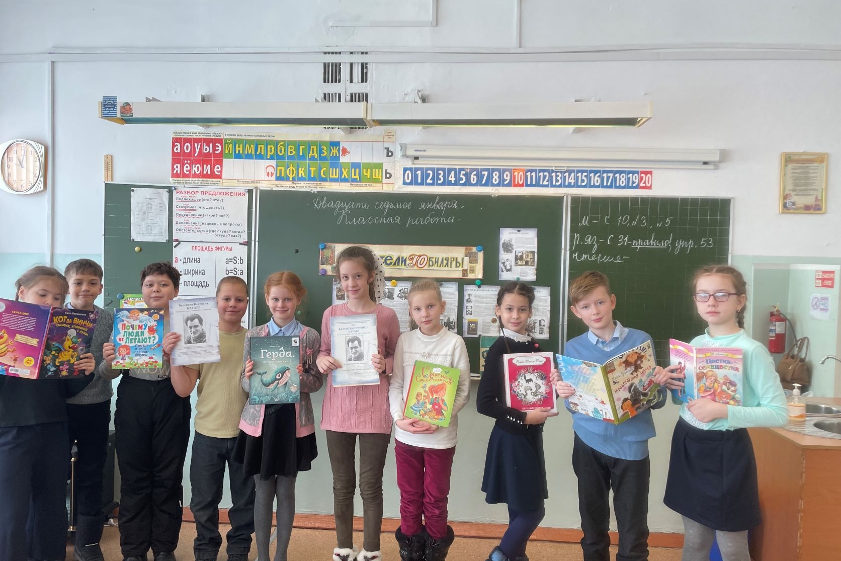 Встреча закончилась совместной фотографией детей на фоне школьной доски, на которую прикрепили лепестки с детскими пожеланиями.