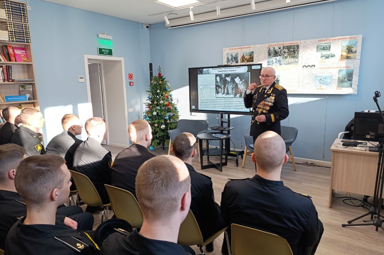 27 января 1944 года – День снятия блокады Ленинграда. Этому событию в модельной Центральной библиотеке им. А. Чехова была посвящена встреча, которую провел для курсантов ТОВВМУ им. С.О. Макарова Узаревич Анатолий Иванович – председатель Приморской краевой организации Общероссийского профсоюза военнослужащих, руководитель лекторской группы «Союз ветеранов Анголы», капитан 1 ранга в отставке.