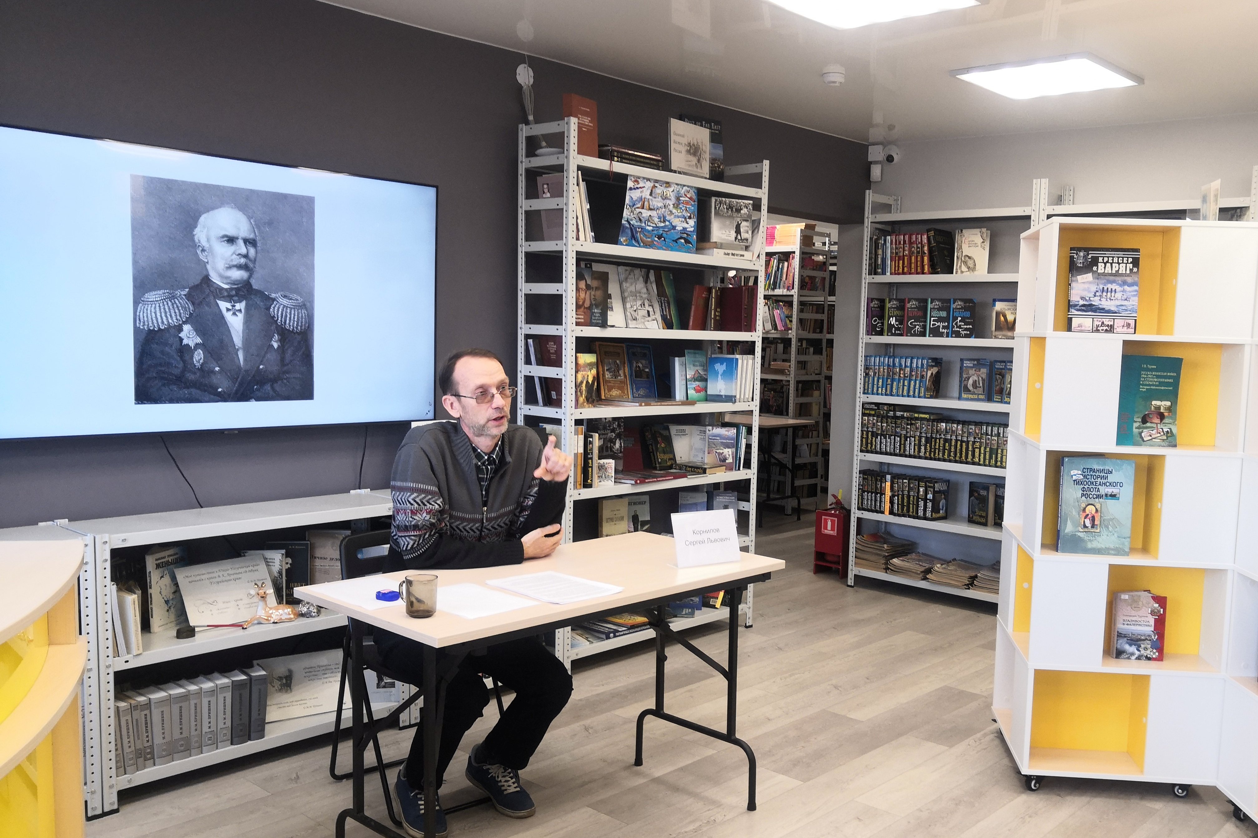 В прошлый четверг в библиотеке №21 ведущий проекта «Объяснения» Сергей Корнилов прочитал лекцию «Капитан Г.И. Невельской и его открытия». Сергей Львович рассказал о начале истории присоединения к России Уссурийского края и основания Владивостока, которое положил знаменитый капитан Геннадий Невельской. Помимо общеизвестных фактов из биографии русского адмирала, было рассказано много интересных исторических подробностей. Так, например, слушатели смогли узнать об истории первого памятника Г.И. Невельскому, установленного во Владивостоке.