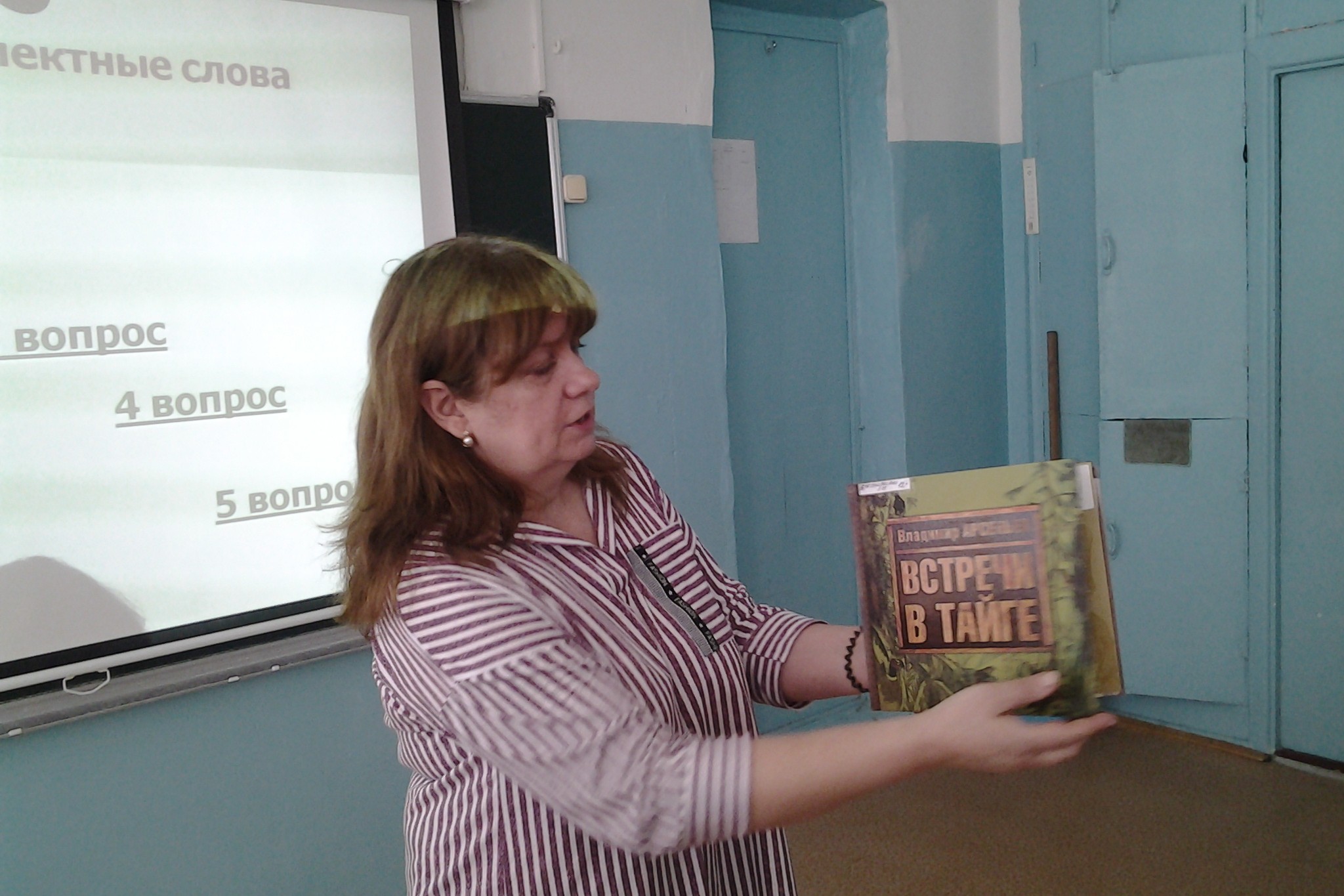 Сотрудники библиотеки № 16 рассказали ребятам о деятельности В.К. Арсеньева, о его вкладе в изучение Приморского края, познакомили с творчеством, как писателя. Обращаясь к электронной презентации увидели быт малых народов Приморского края, узнали об их традициях, которые отразил автор в своем произведении.
