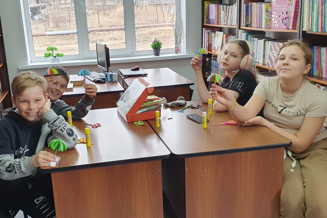 В библиотеке № 19 прошло творческое занятие, на котором юные читатели сделали закладки из бумаги, в виде зонтика, улитки и цветка. Закладка — хоть и небольшая, но очень полезная вещь при чтении книг. Закладки получились веселые и яркие.
