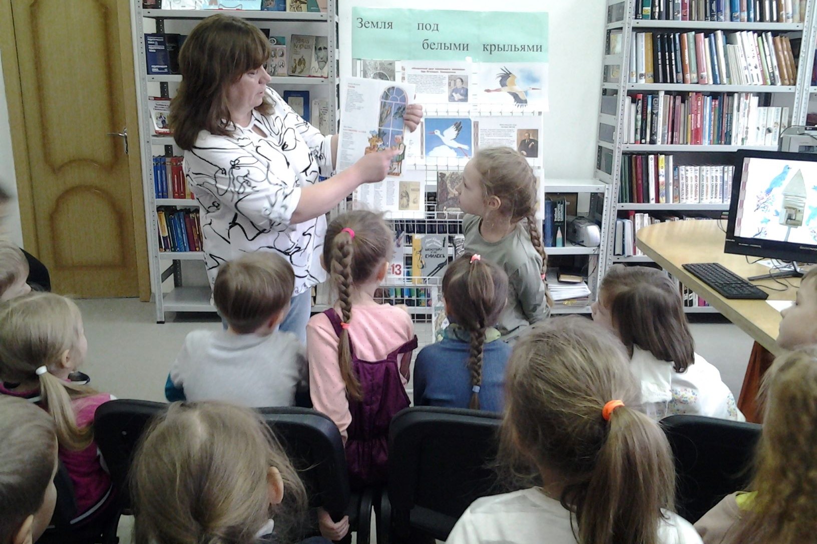 Дети узнали, что такое дружба между странами и народами. Сотрудники библиотеки познакомили ребят с символами Беларуси: белокрылым аистом, символом семьи, картошкой, льном, голубым цветком — васильком, грозным и величественным зубром, обширными болотами, где лягушки исполняют свои «песни». А еще ребята услышали какие напевные колыбельные – колыханки поют мамы своим деткам, посмотрели мультипликационный фильм – сказку «Легкий хлеб», режиссера Л. Суриковой, в которой передан колорит белорусского народа, его традиции и ремесла. Услышали ребята и стихи белорусских поэтов: Максима Танка, Якуба Колоса, Эди Огнецвет, а еще ребята сами выучили стихи белорусских поэтов и декламировали их.