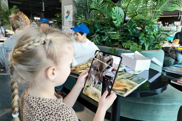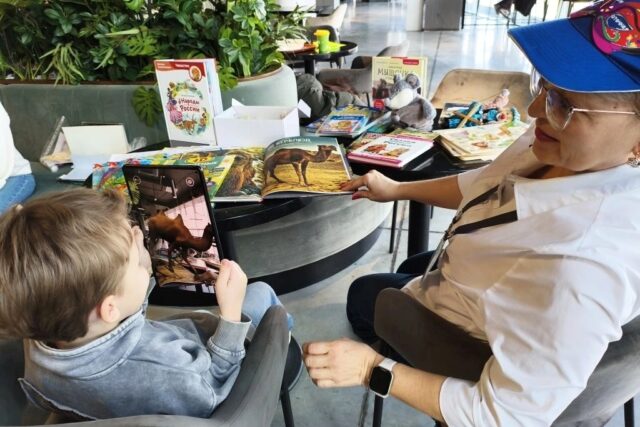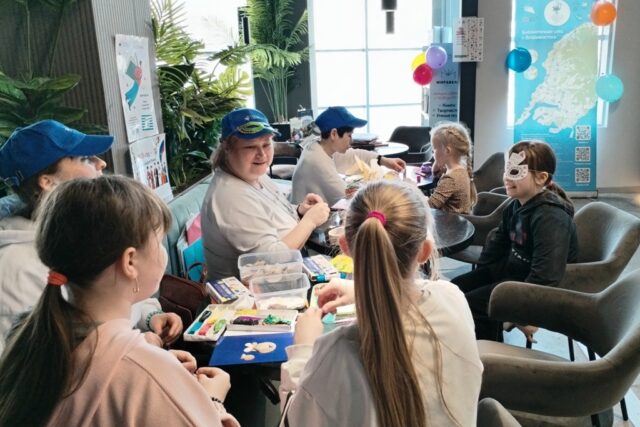 Восторг вызывали книги с дополненной реальностью о животных, на страницах которых с помощью планшета оживали звери и птицы. На протяжении трех часов шла творческая работа. Для детей и взрослых провели мастер-классы по изготовлению поделок: в технике «пластилинография» — создавали из ракушки и цветного пластилина золотую рыбку, героиню сказки А.С. Пушкина, в технике «бумагопластика» раскрашивали и делали театральные маски, создавали волшебных птиц, использовали разнообразные раскраски.