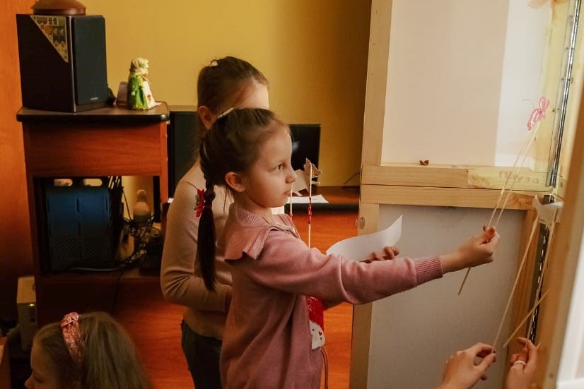 На прошлом занятии дети получили задание: выучить слова к спектаклю «Легенда о восточном календаре», а сегодня закрепили технику управления фигурками.