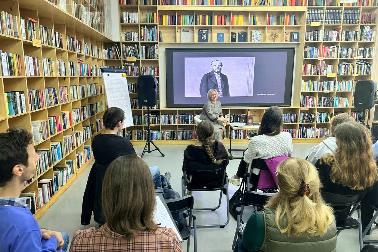 На лекции Мария Кожевникова рассказала о жизни писателя, об основных вехах его биографии, о тех испытаниях и потерях, которые оказали значительное влияние на формирование его личности и творчества. Особое внимание лектор уделила связи Достоевского с городом Петербургом, зачитав несколько отрывков, проанализировала особенности «петербургского текста» и объяснила читателям как городские пейзажи, атмосфера улиц, социальные контрасты города нашли отражение в его романах, став не просто фоном, а своеобразным действующим лицом, влияющим на мысли и поступки героев. Подробно остановилась на романах «великого пятикнижия»: «Преступление и наказание», «Идиот», «Бесы» «Братья Карамазовы». Мария Кожевникова разобрала каждое из произведений, отметив ключевые темы, образы и идеи, волновавшие писателя.