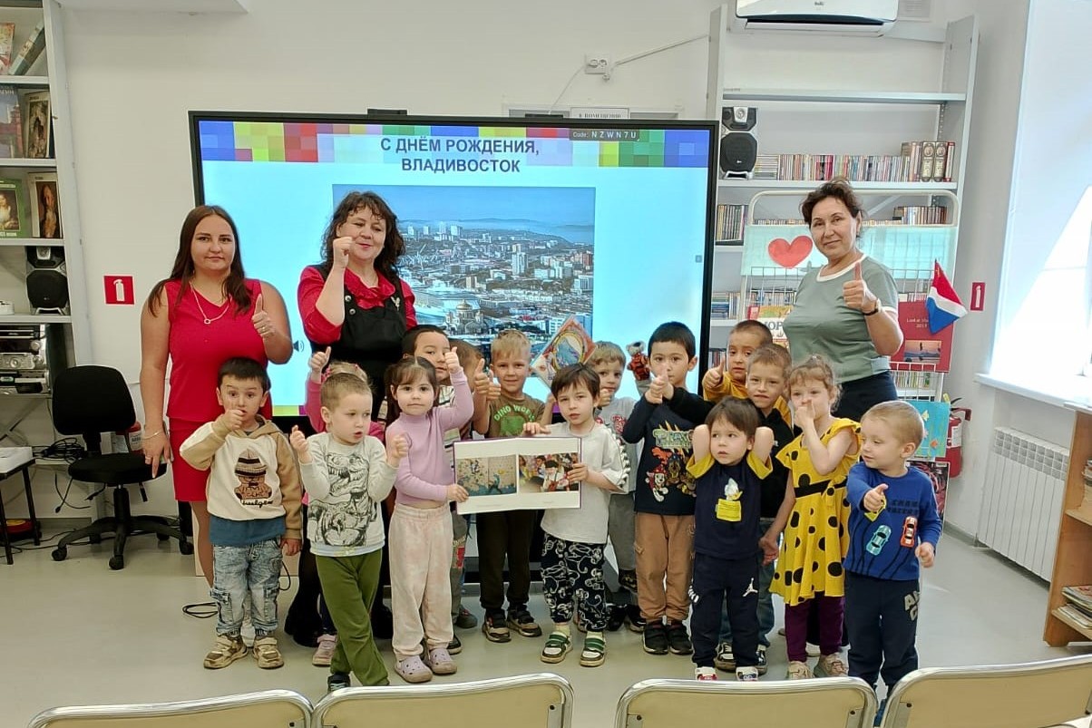 Для детей МБДОУ д/с № 80 в библиотеке № 8 проведен виртуальный экскурс «Тебе, мой город». В доступной форме юные читали познакомились с историей родного города, его героическим прошлым. Прошлись по Набережной, побывав на Сторожевом корабле «Красный вымпел» и подводной лодке С-56, узнали, почему Владивосток носит почётное звание «Город воинской славы». Большое внимание было уделено символике — гербу и флагу Владивостока. Ботанический сад познакомил детей с красочным растительный миром во всей красе. Посетив Театр кукол, дети поделились своими впечатлениями о театральных постановках. Вниманию детей была презентована выставка-праздник «Я люблю Владивосток».