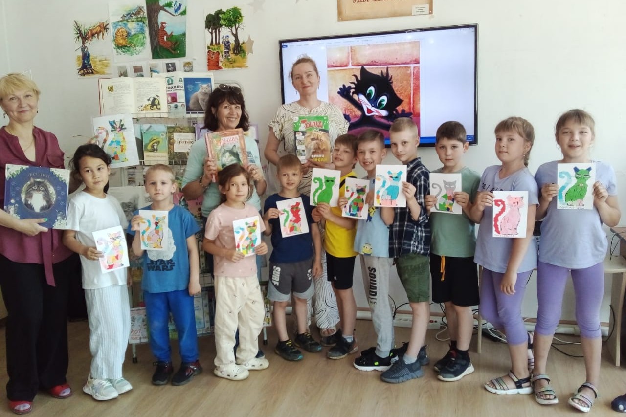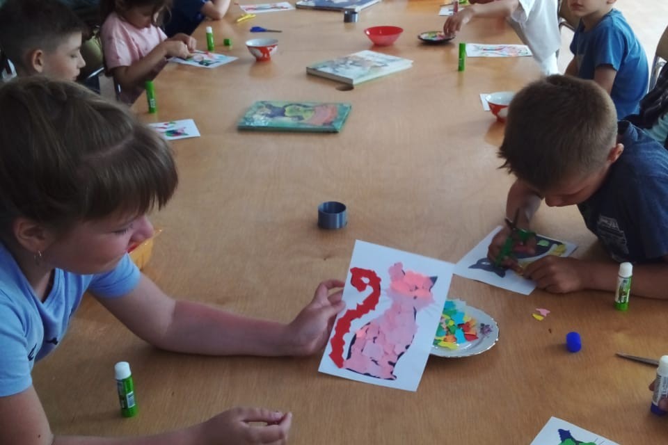 27 июня в библиотеке № 3 в рамках летней программы «Затейник» провели беседу и мастер-класс «Любимый город». Дети посмотрели видео о нашем замечательном городе, отгадали городские загадки. Послушали стихи Елены Муковозовой об улицах нашего города. На мастер- классе сделали парусник для котенка, приклеили флаг, нарисовали якорь. 20 июня в этой же библиотеке знакомились с творчеством Г. Юдина и выполнили аппликацию «Усатый сюрприз». Дети с помощью цветных обрезков сделали картину с котиком.