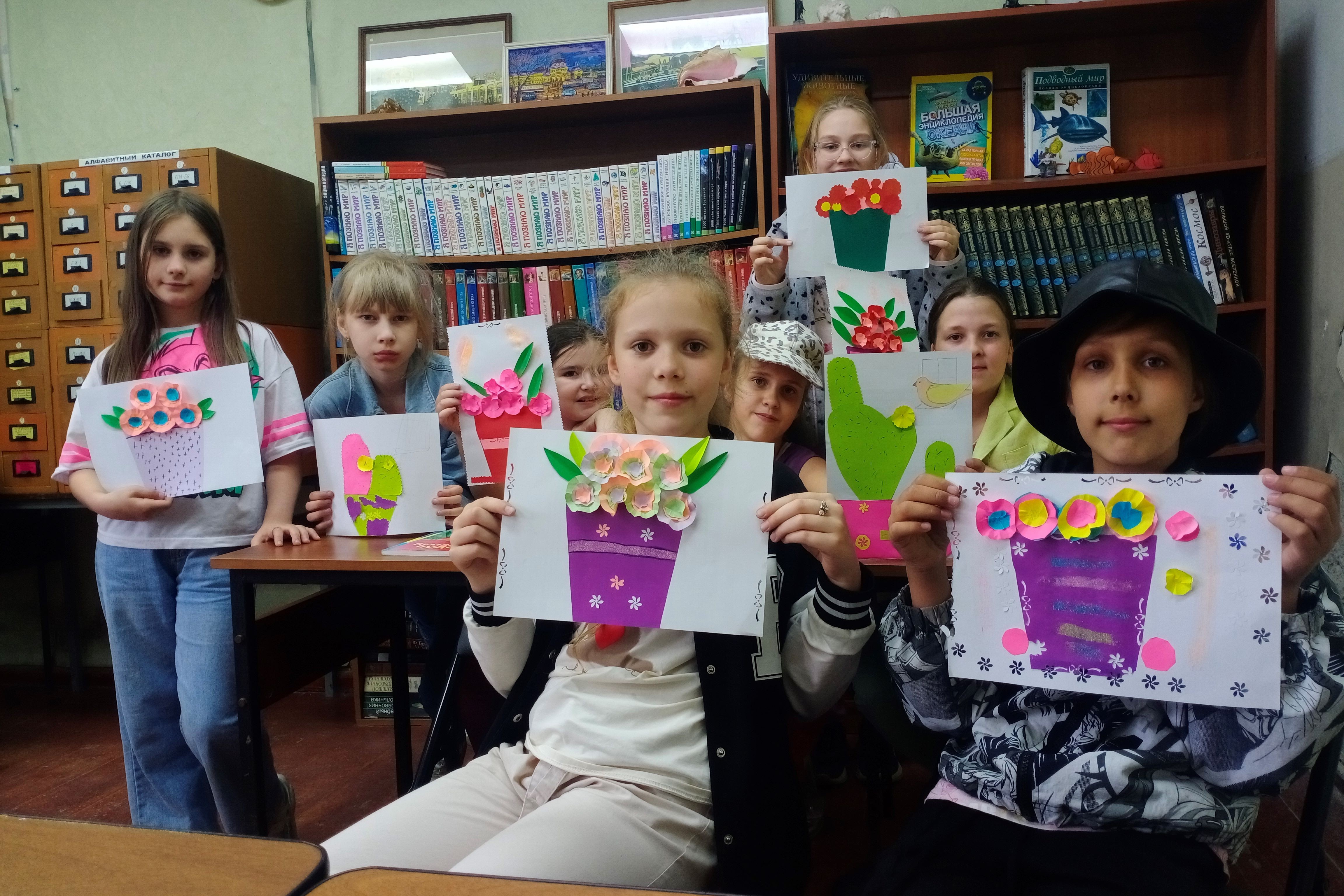 21 июня желающих было в разы больше, а мастерская была посвящена цветам, ведь именно в этот день отмечают день цветов. А цветы в горшочках делали очень интересным и простым способом с помощью простого карандаша и небольших манипуляций руками, но глядя на работы девчонок этого не скажешь, настолько получилось красочно, ярко и необычно, словно живые цветочки расцвели в горшочках из бумаги, хотя среди ярких цветов были и кактусы, выполненные очень интересно и необычно, ведь это тоже цветы. Девчонки проявляли свою фантазию в каждой детали, тщательно подбирая цвета и оттенки. И теперь дома у каждой будут «расти» необычные бумажные цветы, выращенные своими умелыми ручками.