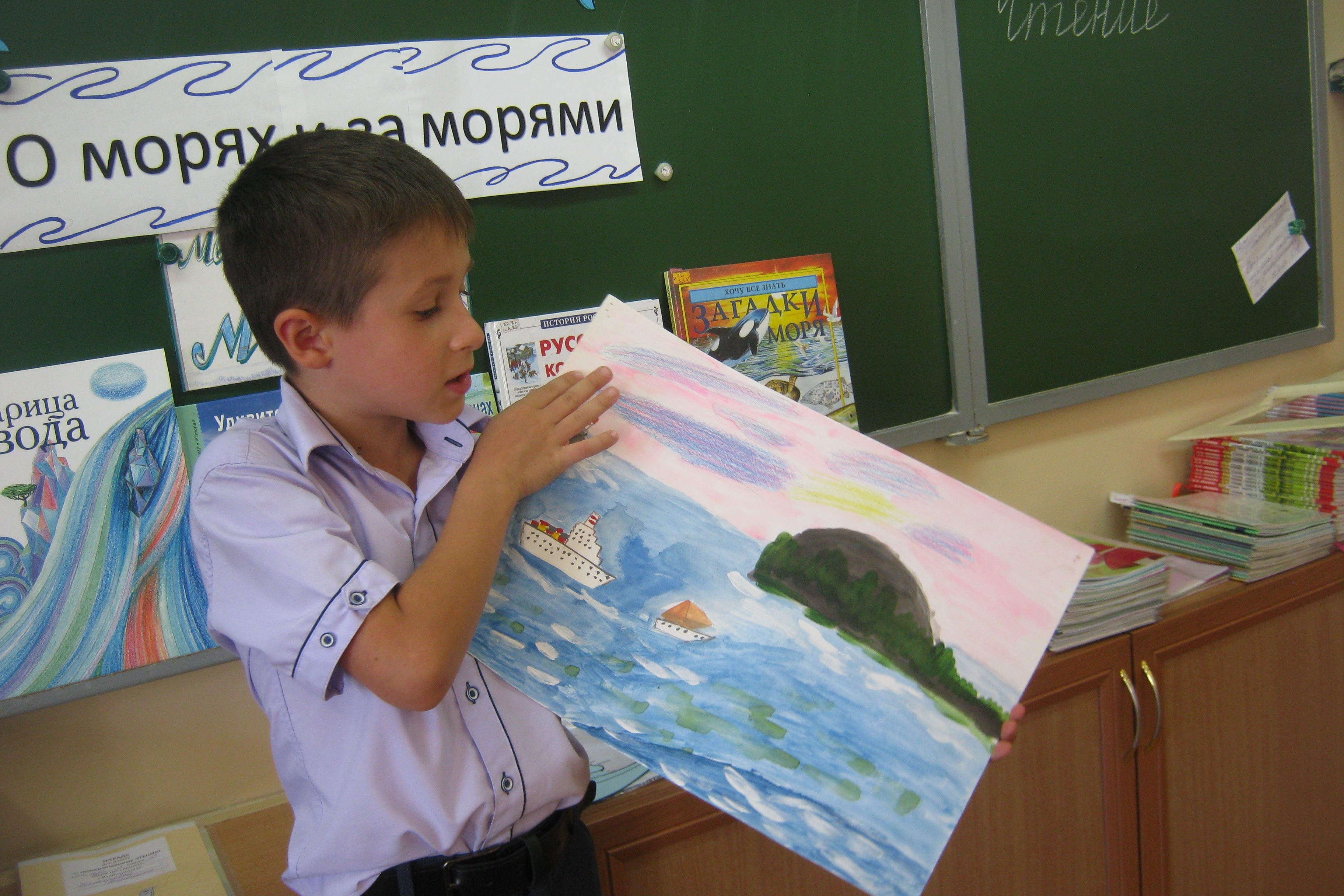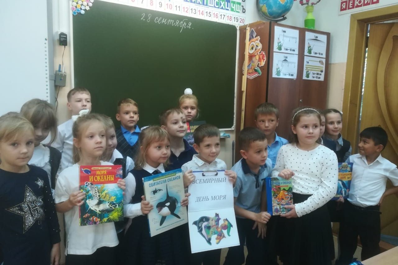 26 сентября библиотека № 15 организовала для учащихся 2 «А» класса МБОУ СОШ № 54 «Вектор» экологический час. Ребята познакомились с удивительными обитателями морей: с рыбами прыгунами, с летучими рыбами, с гитарным скатом и морским котом. Картину «Море» нарисовал Васильев Артем, он и рассказал интересную историю о чудо рыбе, острове и маяке, который светит кораблям в ночи. Книги, представленные для обзора, дети тут же разобрали и еще долго шелестели страницами, выискивая интересные сведения.