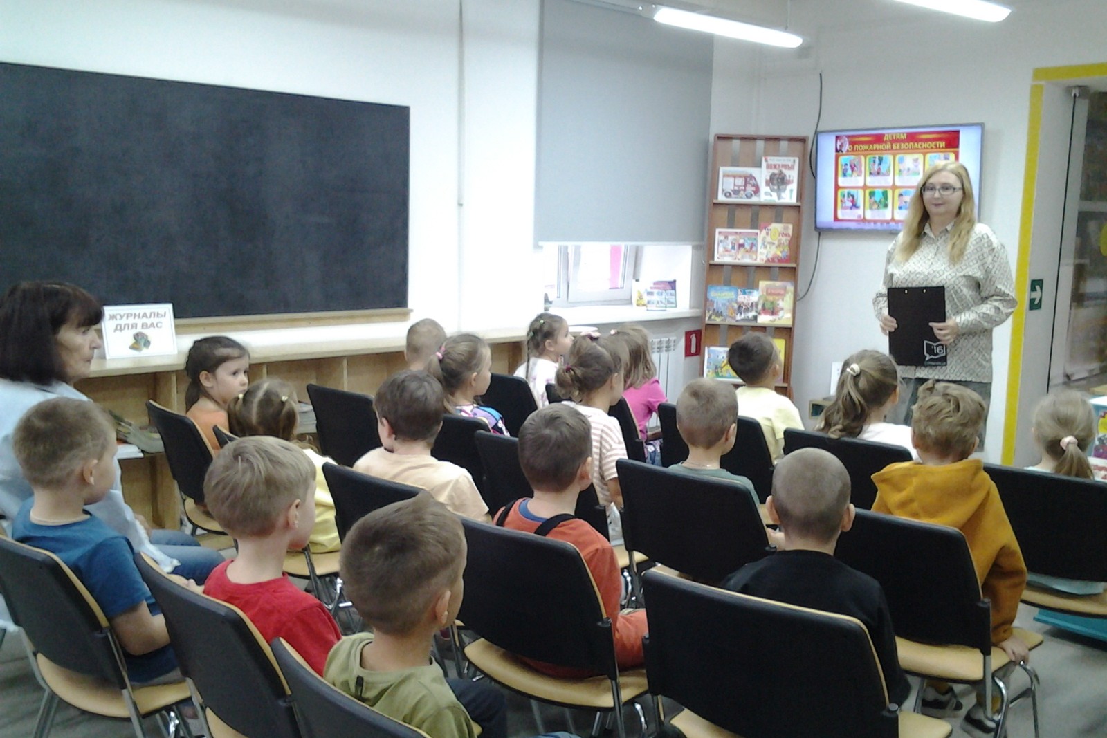 Уже давно люди поняли, что победить пожар в одиночку сложно, а иногда просто невозможно. Значит, нужно действовать сообща и вот тогда стали создавать специальные команды из смелых и умелых, а называть их стали пожарными, а ещё огнеборцами. Библиотекарь обратила детские взоры на информационную таблицу с номерами телефонов, по которым можно вызвать спасателей, после чего прочитала фрагменты стихотворения Самуила Маршака «Пожар» про девочку Лену, ослушавшуюся маму, и про отважного пожарного Кузьму, спасшего не только чуть не погибшую девочку, но и кошку с крыши. Также ребята посмотрели тематические серии мультсериала «Смешарики» — «Опасные игрушки» про спички и «Тушение электроприборов». Дошколята пришли к выводу, что огонь — это друг, но может стать опасным врагом, важно быть внимательными и осторожными, беречь себя и близких!