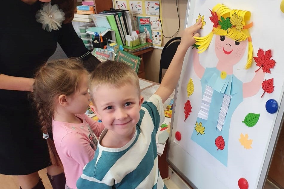 В библиотеке №22 дети активно рассказывали заученные наизусть стихи про осень, отгадывали загадки, слушали стихотворения и рассказы об осени, отвечали на вопросы о явлениях, происходящих в природе осенью, рассказывали, как меняется осенью поведение домашних животных и окружающая природа. Дети с огромным удовольствием оформили аппликации «Осенний букет в вазе», которые забрали домой, чтобы показать дома родителям.