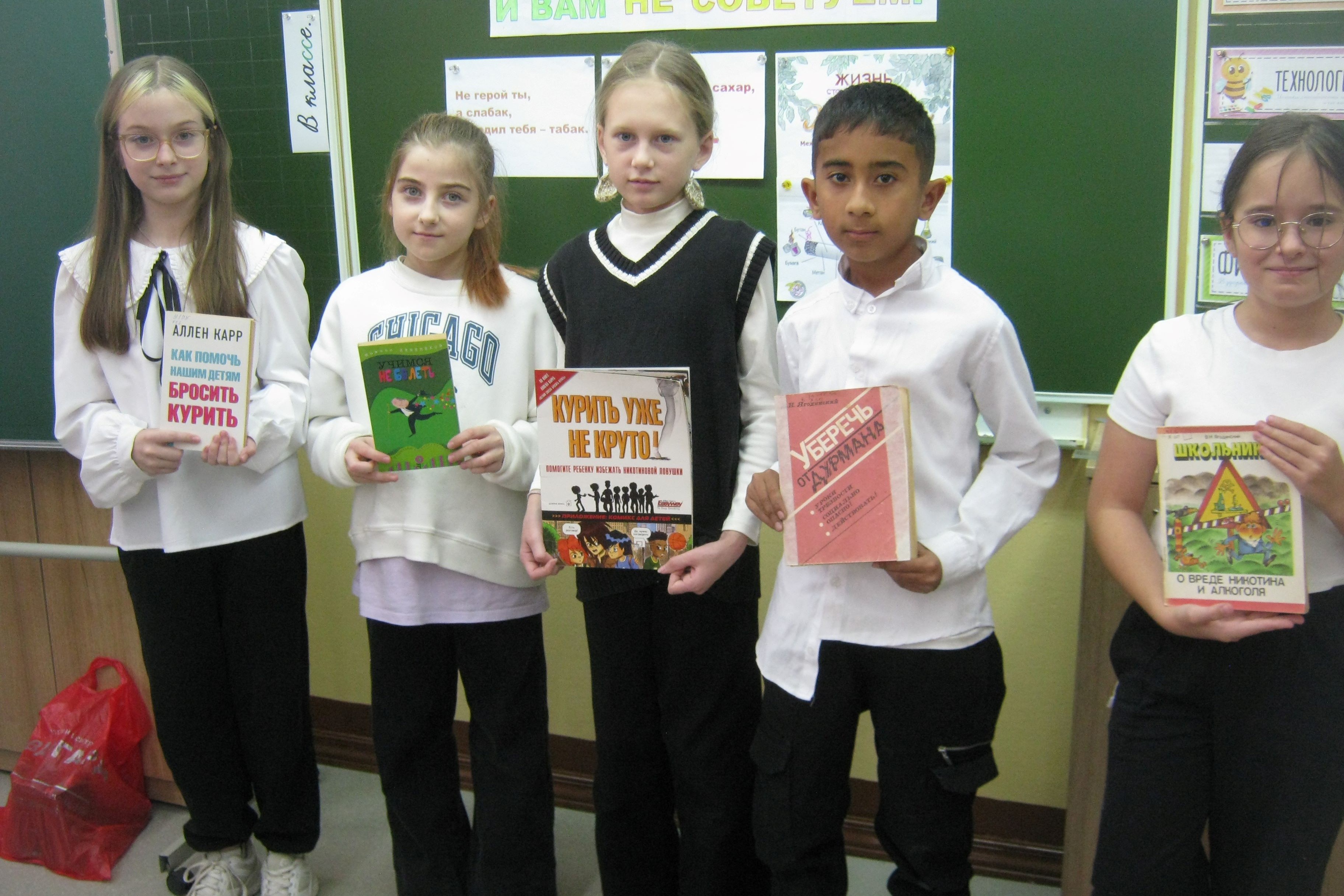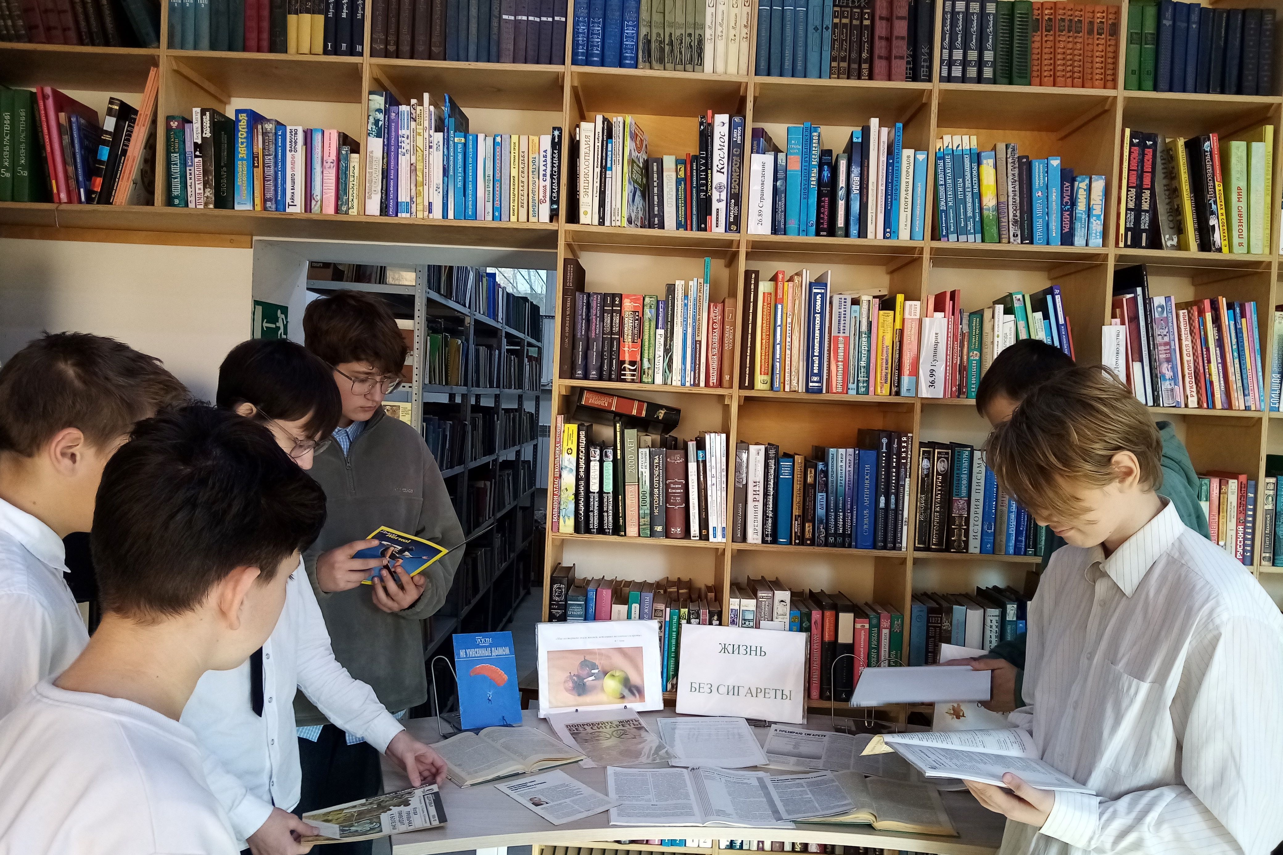В библиотеке № 12 для восьмиклассников Образовательного центра «Ступени» проведен информационный час на тему «Хочешь жить — бросай курить». Школьникам рассказали об истории курения в России, о последствиях пагубной привычки и о том, что если человек курит, то избавиться от этого можно только силой воли. Семиклассники узнали о том, что курящий человек приносит вред не только себе, но и окружающим. Тем самым некурящие люди, находясь рядом с курильщиками, становятся «пассивными курильщиками». Также ребята узнали о последствиях курения кальяна и электронных сигарет. Закрепили полученные знания, ответив на вопросы викторины «В объятиях табачного дыма» С интересом посмотрели мультфильм «Медведь и трубка». В библиотеке организована книжная выставка «Жизнь без сигареты», ребятам предложили познакомиться с книгами о здоровом образе жизни и буклетами, информирующими о вреде курения.