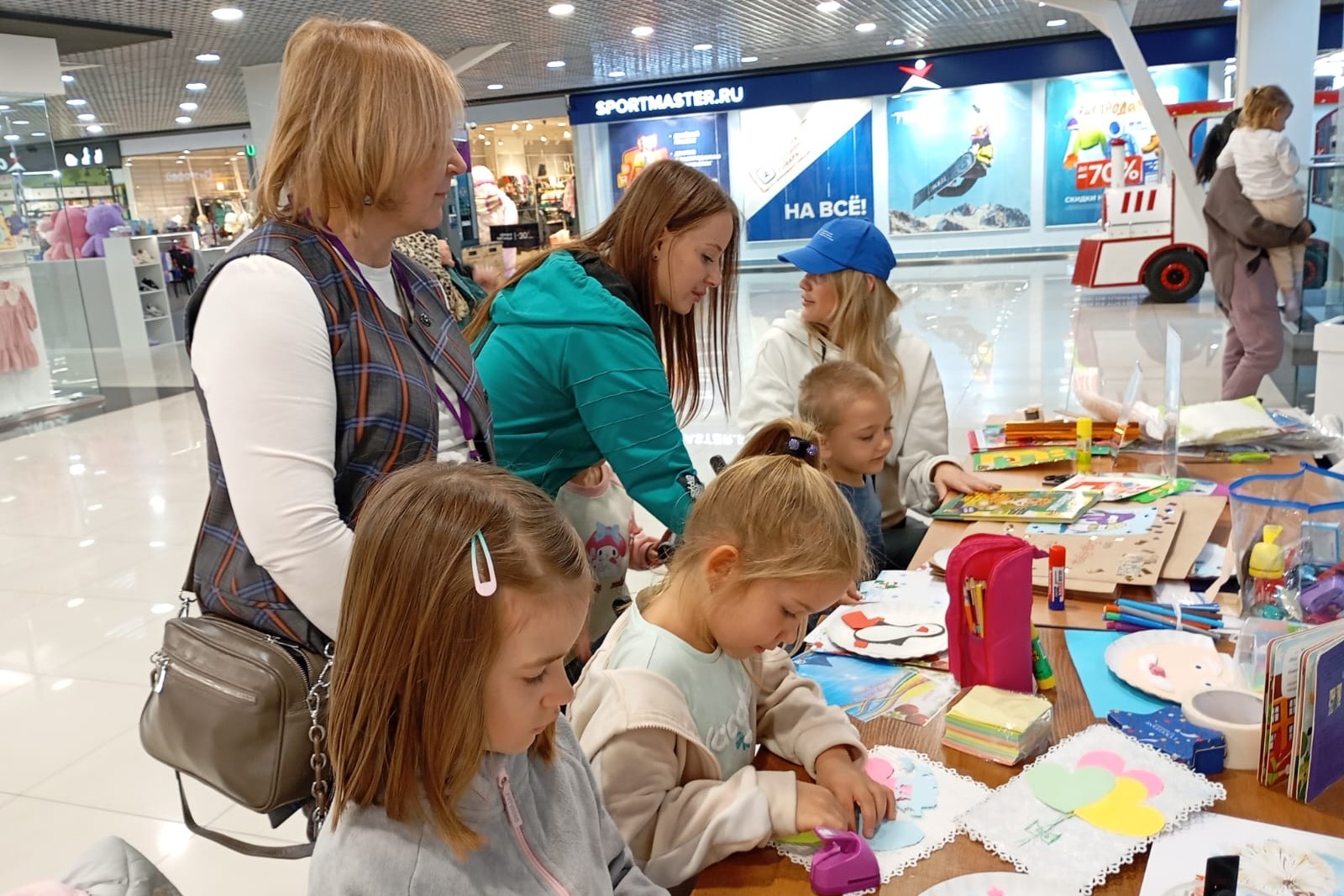 Елена Степаненко, работник библиотеки № 3 приготовила для детей мастер по изготовлению поделок на картонных тарелочках: Снеговика, Медведя, Пингвина, Ангела, Деда Мороза, а также поздравительные открытки с аппликацией из бумаги с Новым Годом и универсальные — с праздником. Последние особенно востребованные. Среди постоянных посетителей мобильной площадки пятилетние Люба и Маргарита. Девочки решили подарить такие открытки своим родным Люба – бабушке в день рождения, Рита – подружке, а вот Ваня, который часто болеет и не ходит в садик, решил сделать поделку с буквой «Ё», про которую ему рассказала заведующая библиотекой № 1 Юлия Колдина. Кроме того, пока мама гуляла по торговому центру, Ваня сделал картинку с Пингвином.