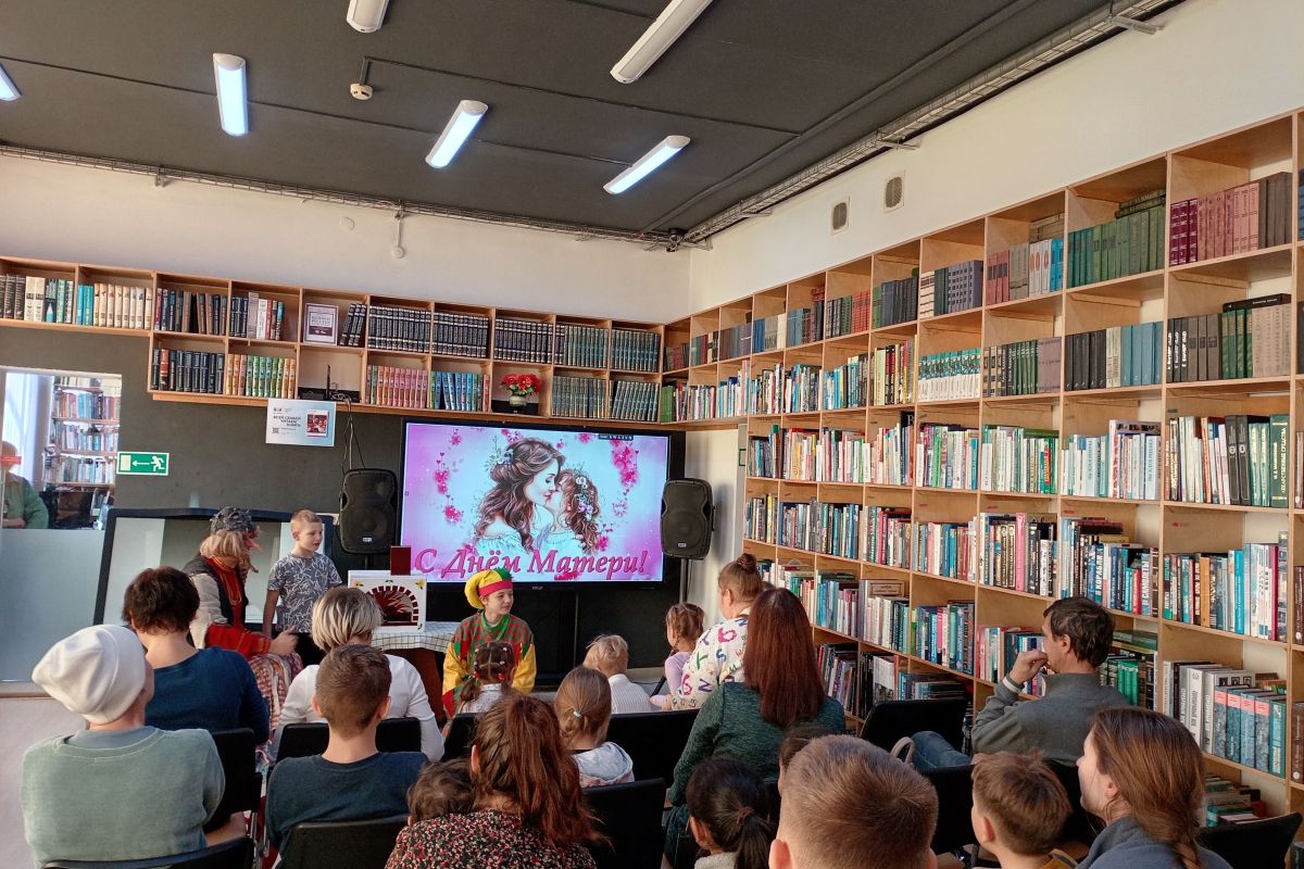 В последний день ноября в соседних библиотеках: детской библиотеке № 7 и библиотеке № 12 (ул. Калинина, 281) было весело и по-домашнему уютно. В этот день 30 ноября здесь был проведен большой семейный праздник «С любовью к Матери» в рамках проекта «Всей семьёй в библиотеку».
