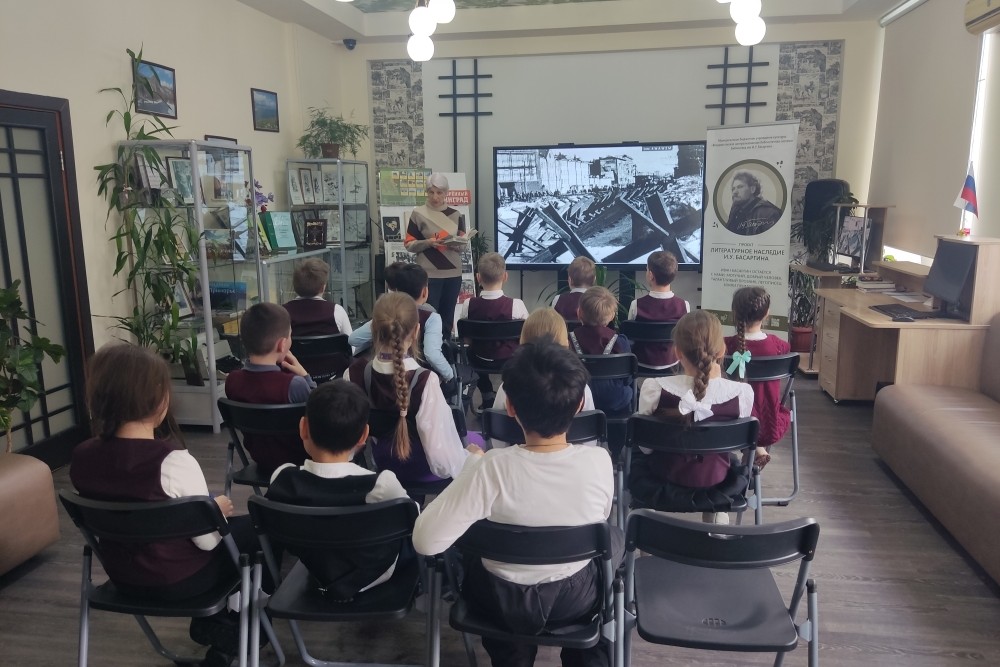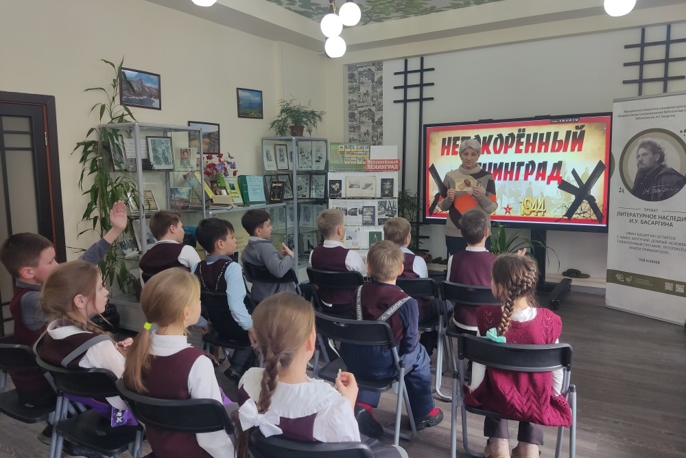 29 января в библиотеке им. И.У. Басаргина для учащихся 3«Б» класса прошёл исторический час «Непокоренный Ленинград». В ходе мероприятия внимание школьников было обращено на то, как жили люди в голодном и холодном городе, работали театры, несмотря на гаснущий свет, на сцене шли весёлые оперетты, а после спектакля люди, воодушевлённые музыкой, долго добирались домой по тёмному пустынному городу. Дети учились в школе, работали детские сады, а Кировский завод, ни на день не переставая, выпускал танки. На радио работали поэтессы Анна Ахматова и Ольга Бергольц, которые своими стихами поддерживали слабеющие силы людей, вселяя уверенность в нашей победе. Город жил, вопреки фашистской бесчеловечной теории, что «…он будет стёрт с лица земли».