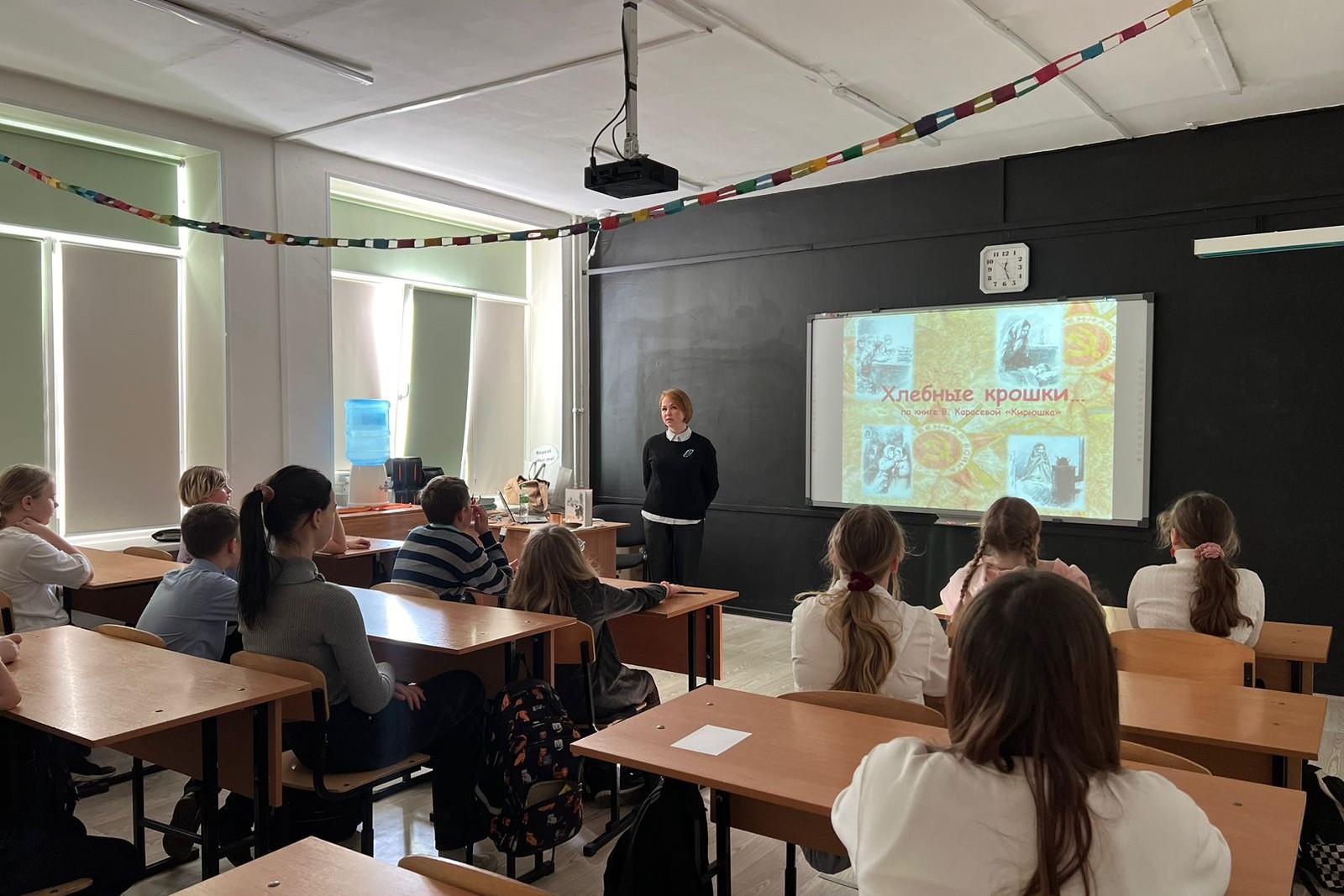 Беседа сопровождалась прочтением рассказов Веры Карасевой из сборника «Кирюшка», это помогло учащимся лучше понять, какие невзгоды выпали на долю детей во время блокады. Автор этих рассказов сама пережила блокаду Ленинграду и ей не понаслышке известны ответы на вопросы: каким бывает настоящий голод, что такое воздушная тревога, и как выжить в аномальные морозы. Детей тронули до глубины души рассказы Веры Карасевой, и заставили задуматься об ужасах, через которые прошли дети, ради свободы и мира на земле. В завершении встречи, ребята посмотрели уникальные кадры военной кинохроники и узнали, что в честь освобождения города на Неве 27 января 1944 года был произведен праздничный салют из трехсот двадцати четырех орудий.