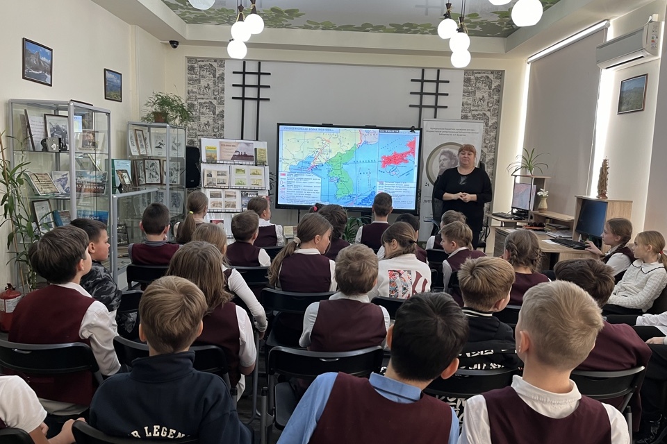 В библиотеке им. И.У. Басаргина (ул. Юмашева, 8) учащиеся 4 «Б» класса «СОШ № 57» совершили 28 января путешествие во времени в эпоху героической русско–японской войны, говорили о человеческих судьбах, долге и памяти. Мероприятие организовано по программе «Моё Отечество» в рамках акции «Тихоокеанская слава».