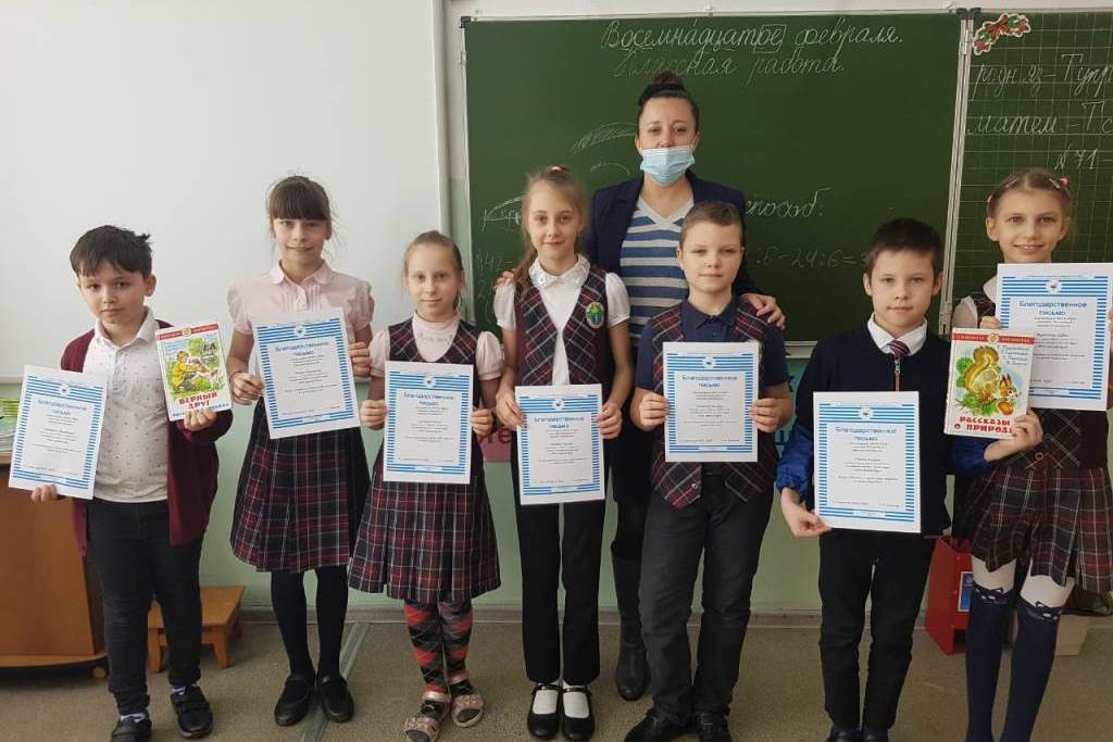Третьеклассники очень активно участвуют в библиотечных акциях и проектах он лайн. И поэтому начали встречу с торжественного момента- вручение Благодарностей за активное участие в акции «Мой верный друг». Дети коротко рассказали всему классу о своих творческих работах, назвали своих любимых домашних питомцев.