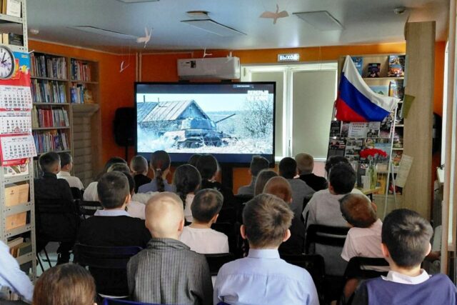 После кинопросмотров участникам кинопросмотров провели обзор книг у выставок: «СВОи герои» и «Читайте детям о войне», на которых представлены наряду с известными произведениями о Великой Отечественной войне, книги о героях Специальной военной операции, а также мини-версии памятной выставки «Портрет Героя».