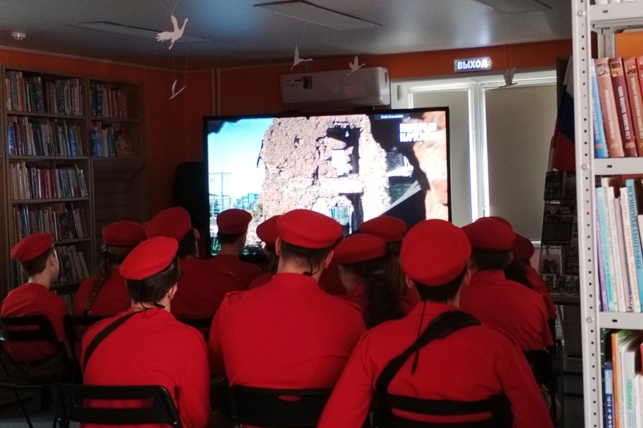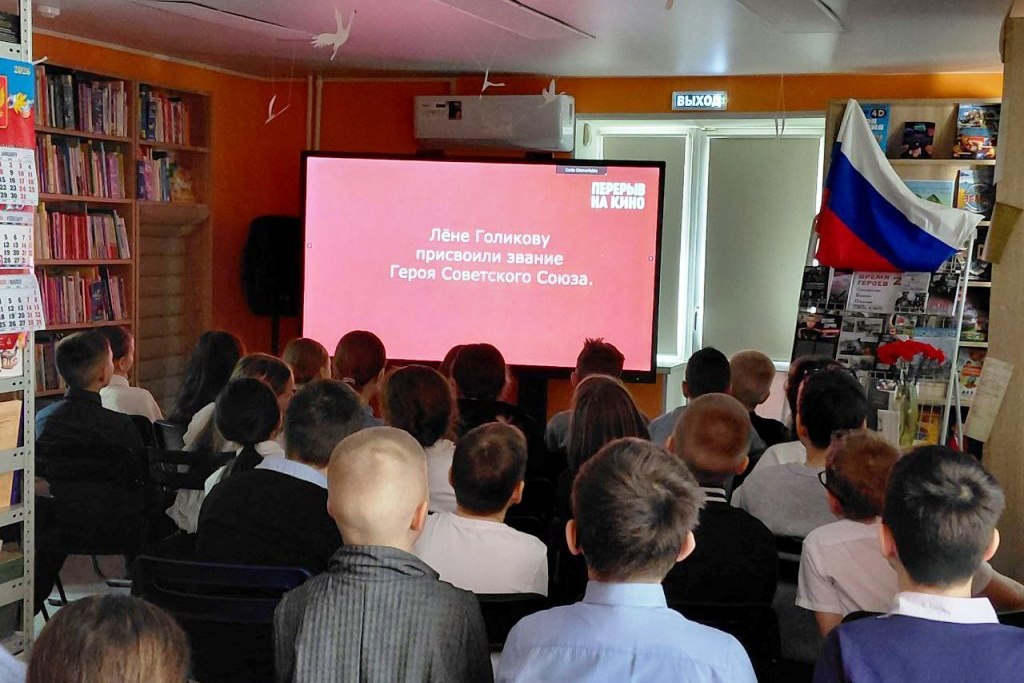 После кинопросмотров участникам кинопросмотров провели обзор книг у выставок: «СВОи герои» и «Читайте детям о войне», на которых представлены наряду с известными произведениями о Великой Отечественной войне, книги о героях Специальной военной операции, а также мини-версии памятной выставки «Портрет Героя».