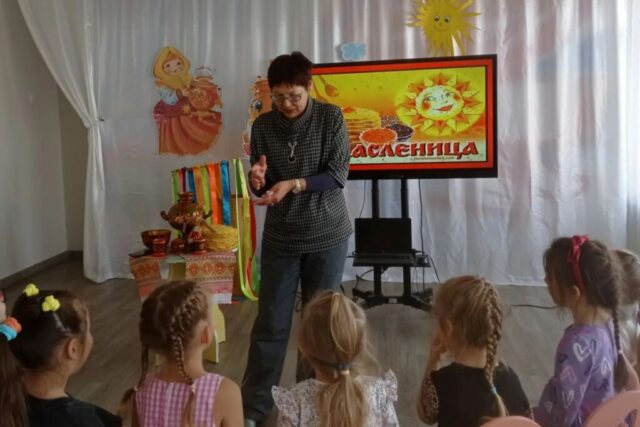 А праздничная встреча, посвященная Масленице проведена библиотекой для маленьких читателей из МБДОУ Д/С № 151 (Амурская, 25а). Библиотекарь рассказала о народных традициях праздника: зачем нужно печь блины, почему сжигать Масленицу. Мы поиграли, отгадали загадки, посмеялись шуткам скоморохов, учили дразнилки и скороговорки, хором кричали заклички — звали Весну, испекли блины «понарошку». Мероприятие получилось праздничным и информативным.