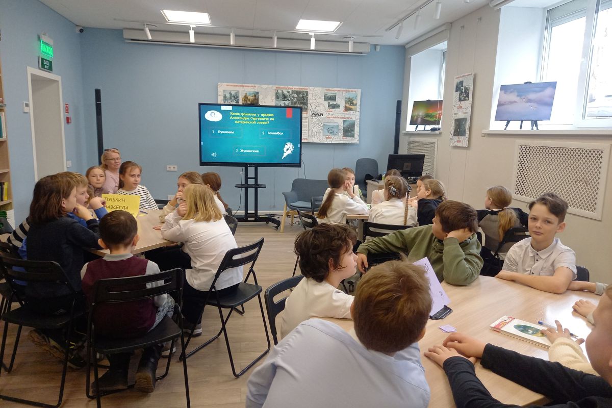 Квиз «Портал в Лукоморье» сотрудники библиотеки №3 провели в Центральной библиотеке им. А. Чехова 25 февраля для учащихся 4 «Г» класса СОШ №63. Интеллектуальное состязание, посвященное поэту Александру Сергеевичу Пушкину, охватило его творческое наследие, интересные факты из биографии и его влияние на русскую литературу. Мероприятие проходило в формате живого диалога, что превратило квиз в увлекательное путешествие по творчеству А.С. Пушкина. Дети настолько прониклись общением, что, когда закончилась игра, не торопились уходить: обсуждали свои ответы, делились впечатлениями и говорили — «что была отличная игра!».