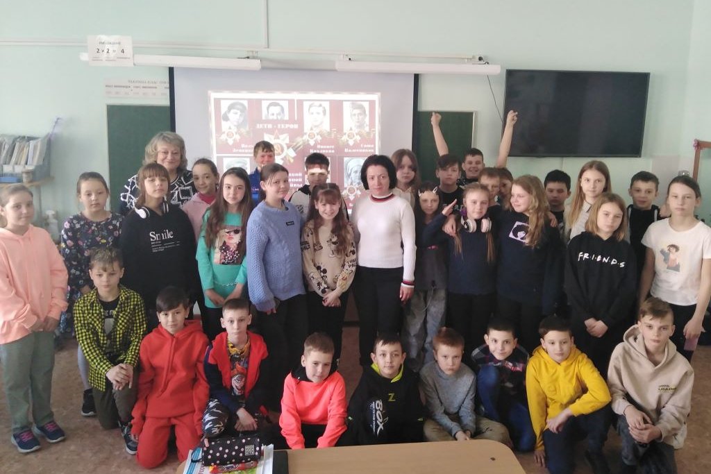 В конце марта в четвертом классе школы №82, библиотека им. А.П. Чехова провела час патриотизма. Вспоминали советских мальчишек и девчонок, которые плечом к плечу со взрослыми встали на защиту страны во времена Великой Отечественной войны. Аркаша Каманин, Саша Ковалев, Боря Кулешин, Зина Подольская, Лара Михеенко, Валя Пономарева. Их было так много, этих юных героев, что память не смогла сохранить все имена. Известные и неизвестные маленькие герои Великой войны, они тысячами сражались и гибли на фронтах и в оккупации.
