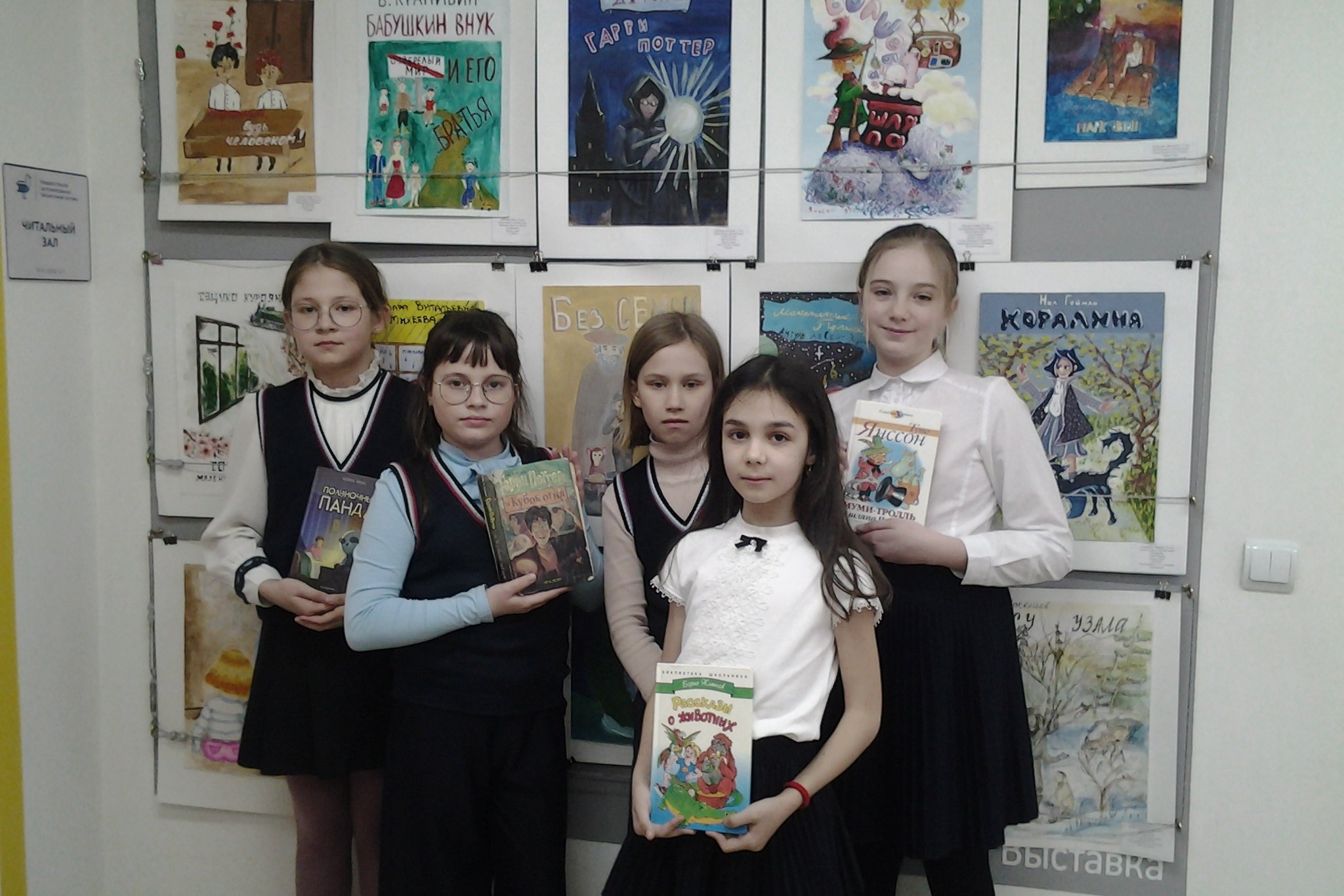 Читатели библиотеки уже оценили новую выставку, у многих появились любимые работы, это, конечно, иллюстрации обложек любимых книг. Ребята обсуждают уже прочитанные книги, рассматривают рисунки и выбирают книги для чтения.