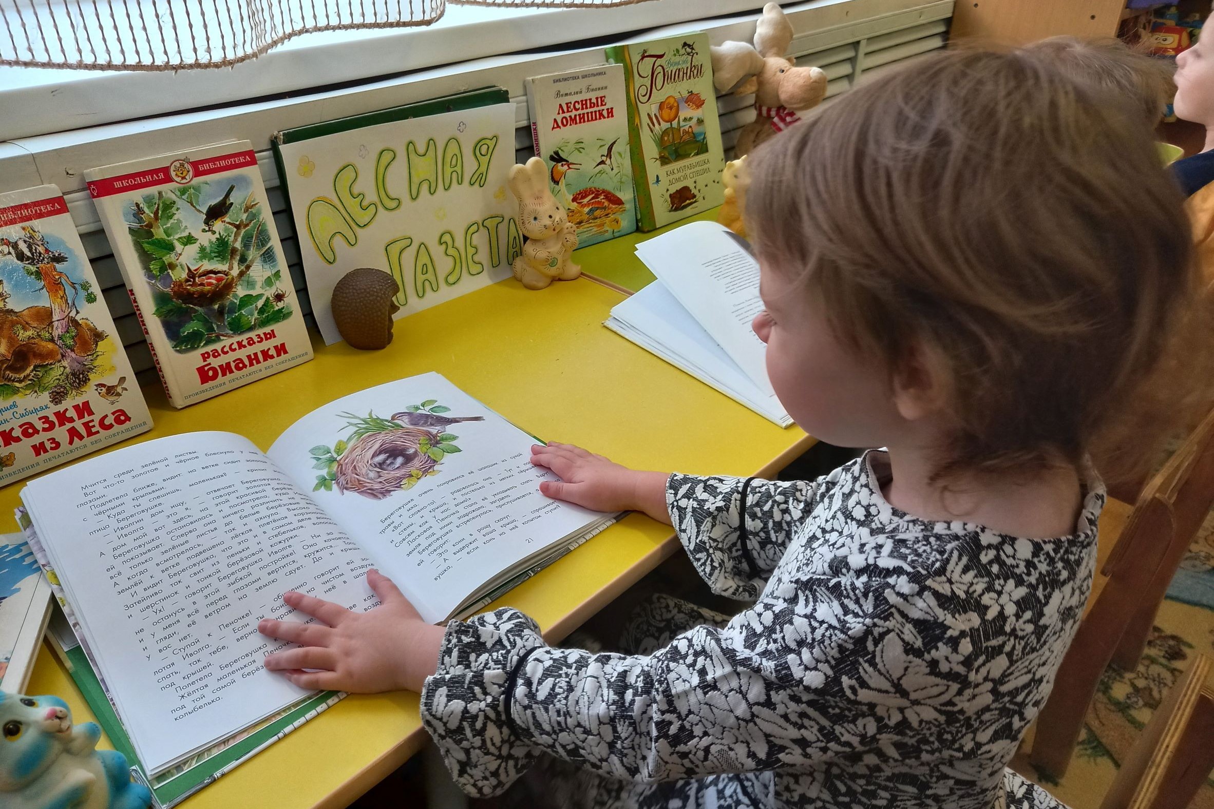 30 марта библиотека № 17 провела для маленьких воспитанников детского сада № 187 комментированное чтение в честь 100 лет со дня выхода сборника рассказов произведения Виталия Бианки «Лесная газета». В нём все, как в обычной газете: заметки, телеграммы, объявления, рассказы. Только написано там не о людях, а о птицах, зверятах, насекомых и их происшествиях. Книга учит быть добрым, наблюдательным, знать и любить природу. Дошкольники приняли активное участие в литературной викторине «Птичья галерея»: отгадывали загадки, определяли какое животное, о чем поет, отвечали на занимательные вопросы викторины.