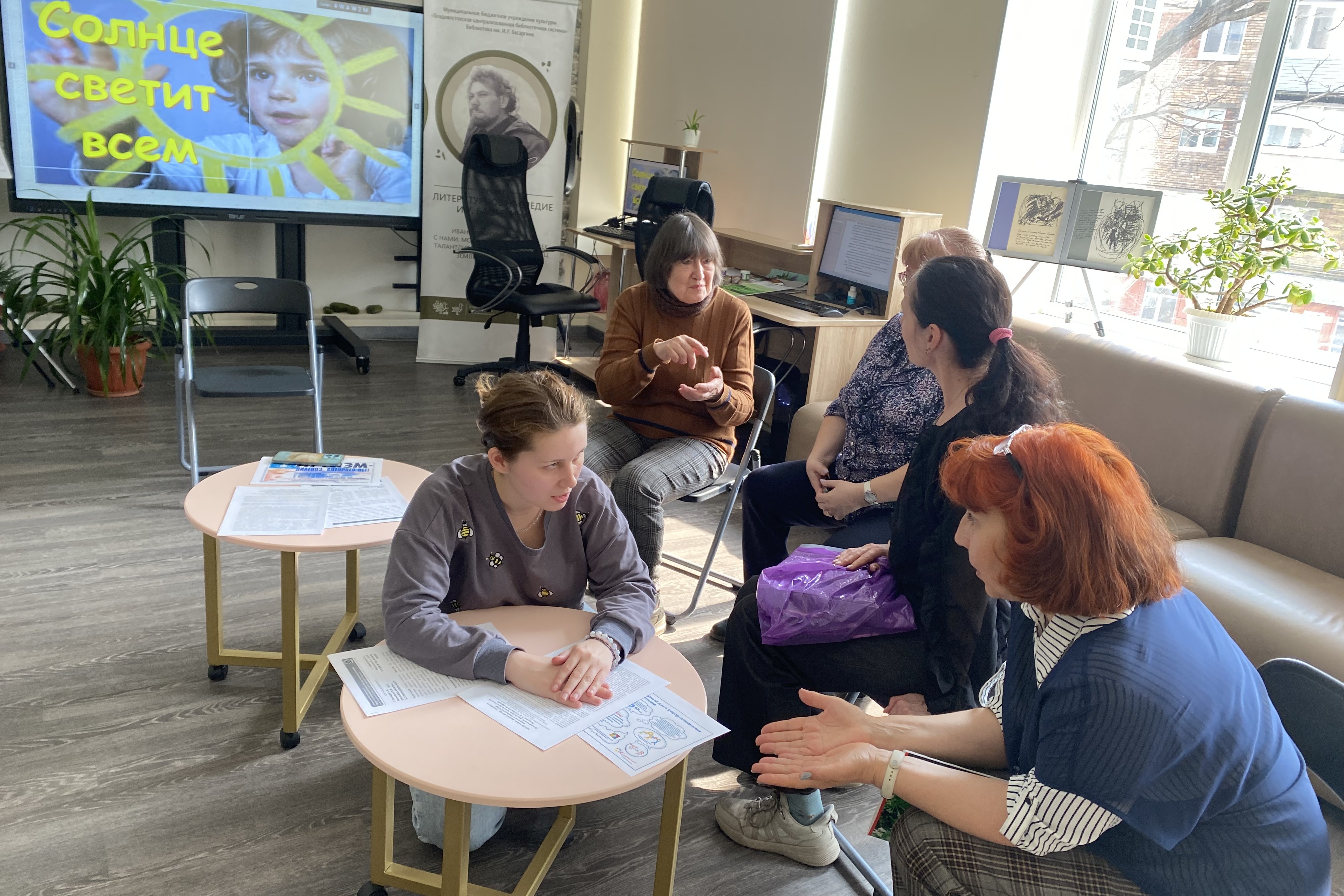 В детской библиотеке № 7 в рамках этой акции 3 апреля для детей с особенностями развития был проведен литературно-творческий час «Книга в твоих руках», посвященный книге и чтению. Детскую библиотеку и школу № 74 связывает многолетнее сотрудничество в рамках совместной работы по общению, поддержке и развитию для семей с детьми с РАС. В этот день ребята вместе с мамами посетили библиотеку, чтобы познакомиться с новыми интересными книгами, посидеть в библиотеке, посмотреть книги, журналы, их полистать.