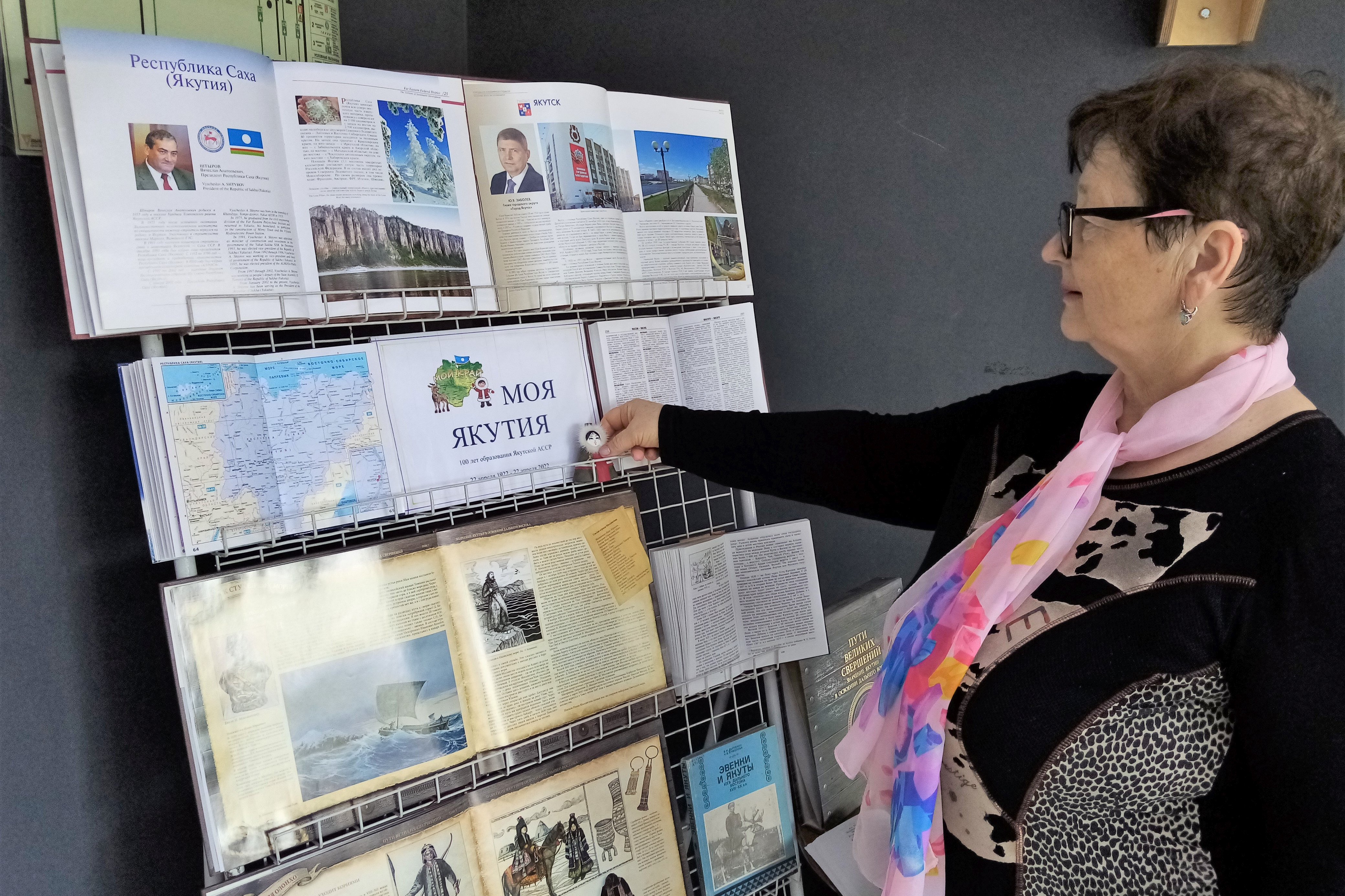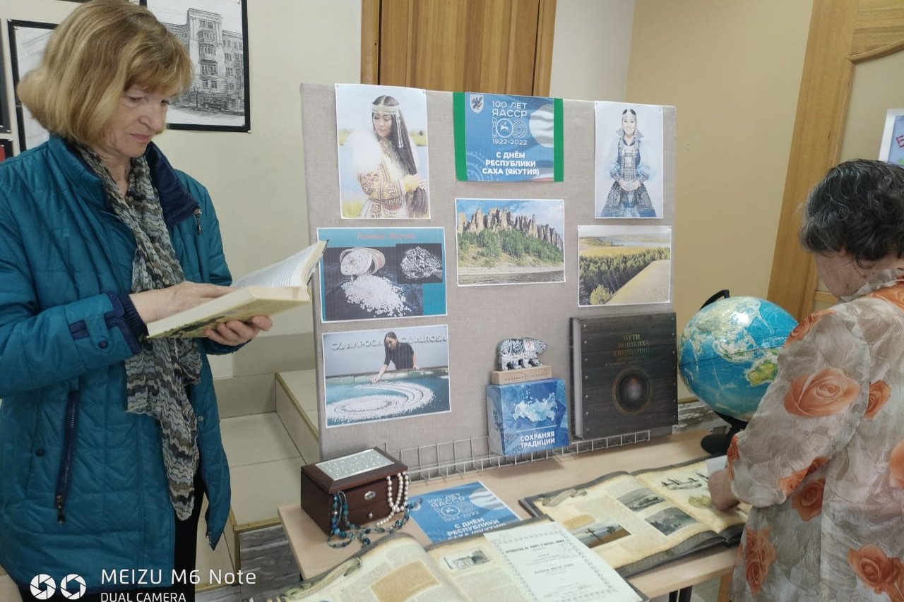 Библиотека №4 организовала просмотр видеофильма «День Республики Саха (Якутия)», который познакомил читателей с интересной историей основания и образования Якутской АССР, самобытными традициями якутского народа, красотой якутских пейзажей и достопримечательностями Республики. Слушатели клубного объединения «В мире прекрасного» проявили большое желание и интерес более подробно познакомиться с культурой, языком, литературой (устным народным творчеством) Якутии. Прикоснуться к искусству и красоте, созданной рукой талантливых якутян, позволила и книжная выставка «Якутия — чудесный северный край». На выставке представлены подарочные исторические альбомы «Пути великих свершений. Значение Якутии в освоении Дальнего Востока» в двух томах, документальный роман Леонида Юзефовича «Зимняя дорога», а также фотоиллюстрации объектов национально-культурного достояния – национальный парк «Ленские столбы»; чудо природы Якутского края — огромный ледник Булуус, самый большой в мире алмазный карьер – кимберлитовая трубка «Мир» и россыпи алмазов, а также потрясающей красоты национальные костюмы.