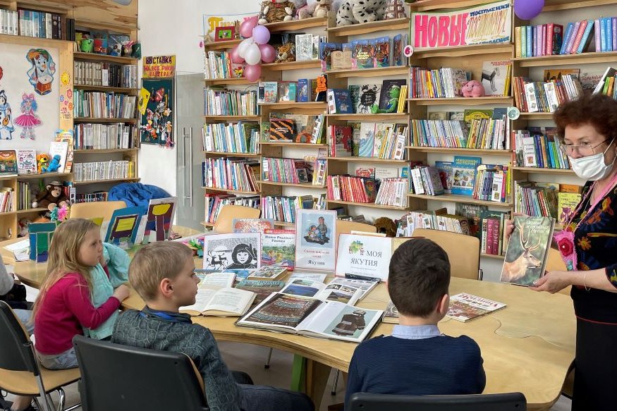 Детская библиотека №7 провела литературный час «Сказки широкой земли». Читатели библиотеки и учащиеся 2 «В» класса школы №74 услышали интересный рассказ об этой огромной северной стране, занимающей добрую половину всего сибирского Севера, о ее бескрайней тайге и столь же бескрайней тундре, о величайшей реке мира, протекающей там – реке Лене, о природных богатствах этого уникального уголка природы.