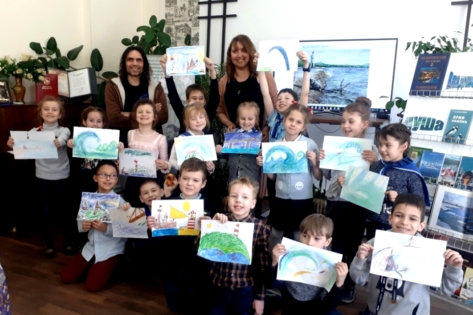 В 2019 году в библиотеке им. И.У. Басаргина я провёл небольшой мастер-класс для младших школьников. Рассказал ребятам о том, что художников, которые главной темой творчества выбирали море, называют маринистами, а картины с морскими видами – маринами. Показал свои работы. Дети с интересом рассматривали море, а затем каждый нарисовал свою собственную морскую картину.
