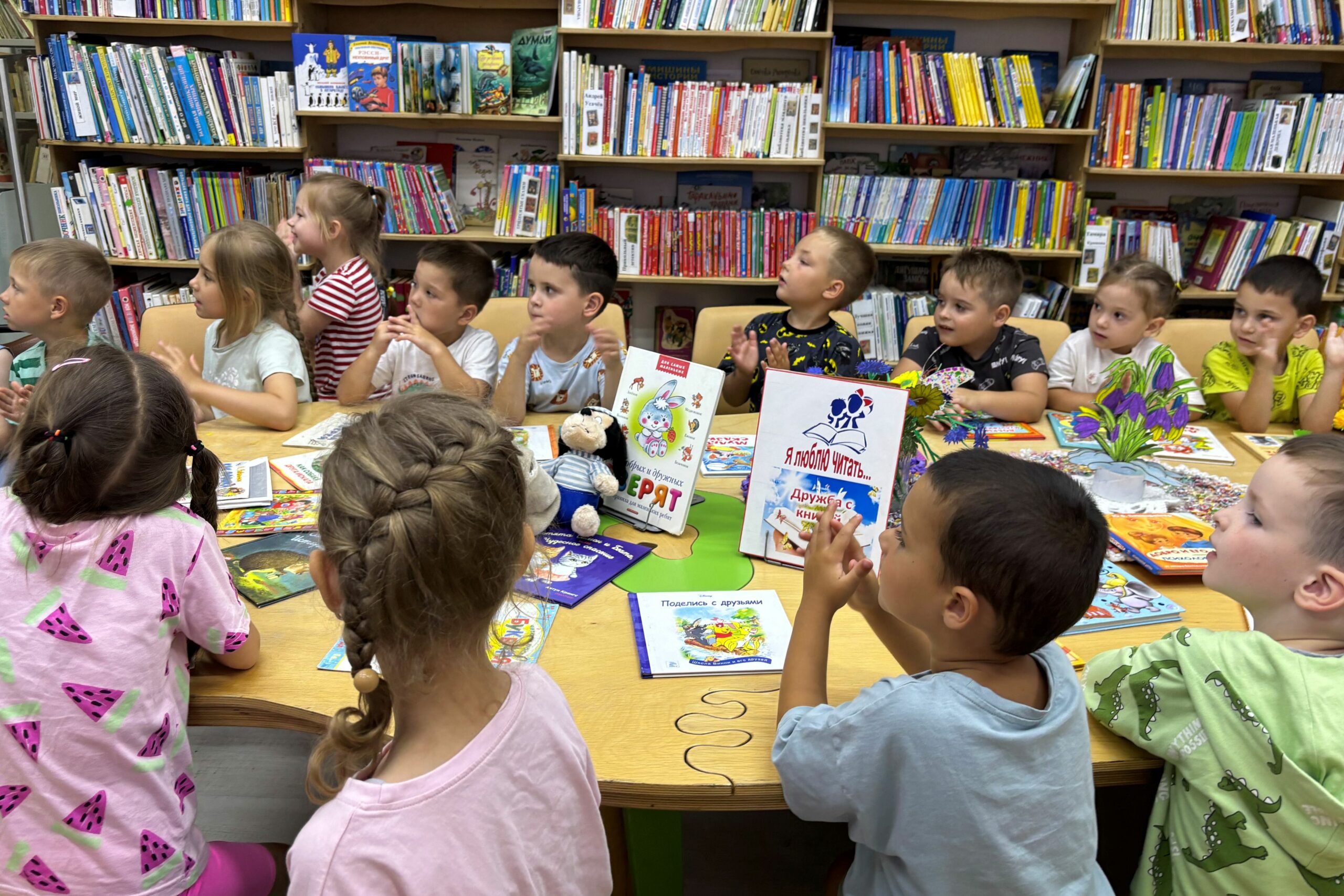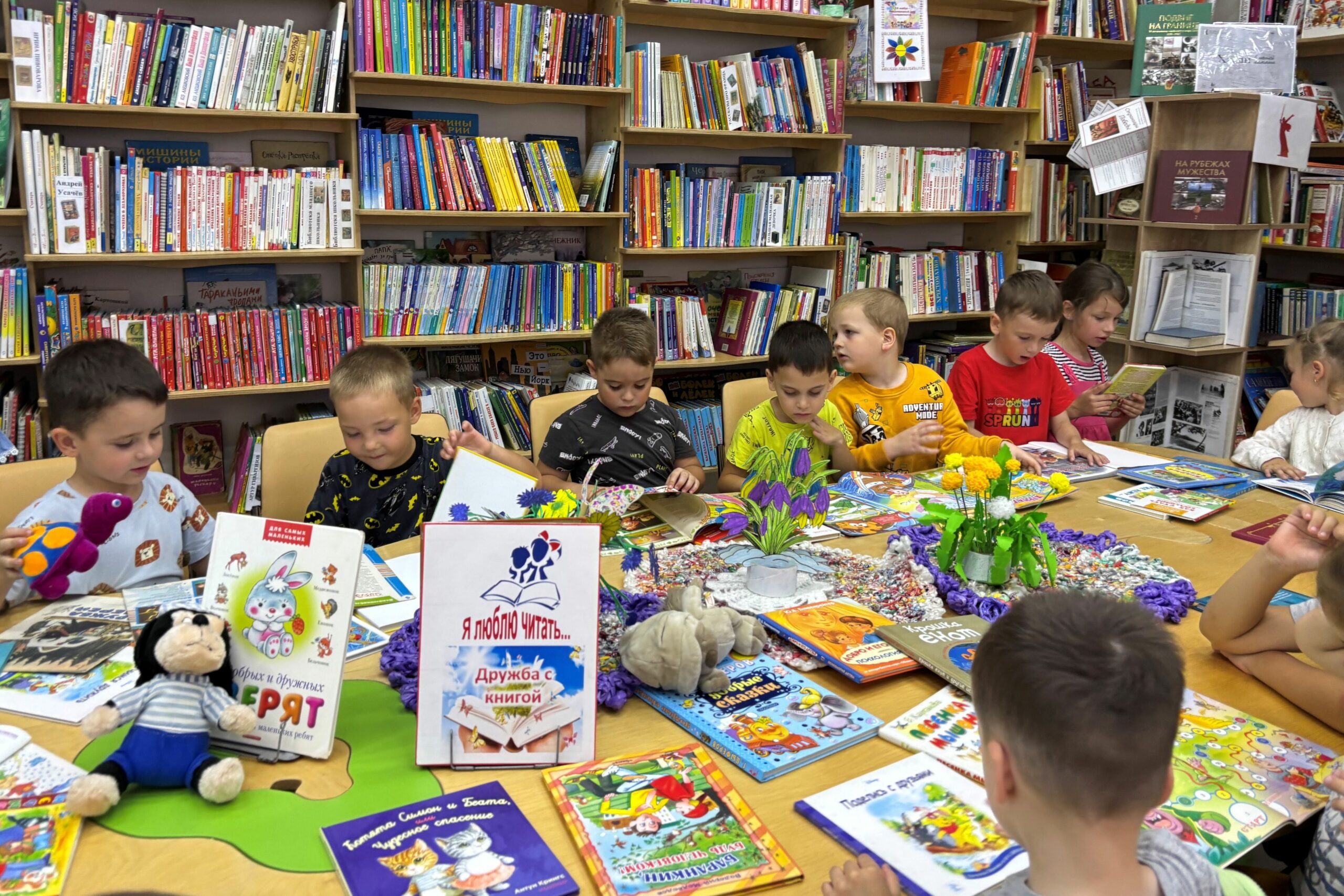 30 июля в детской библиотеке № 7 (ул. Калинина, 281) состоялся веселый праздник, в нём приняли участие воспитанники детского сада № 39, регулярно посещающие библиотеку в рамках совместного проекта «Истоки добра». С ребятами поговорили о том, что такое дружба, друг, и каждый поделился своим мнением на эту тему, а потом все согласились с тем, что дружба — это когда люди хотят быть вместе, когда вместе играют, общаются и не ссорятся. Ребята активно участвовали в конкурсе загадок про друзей и дружбу, читали и слушали добрые стихи Марии Денисовой, Златы Потаповой, Агнии Барто, Сергея Михалкова, Самуила Маршака. Закончили праздник сказочным конкурсом, когда пришлось отгадывать загадки о героях сказок, стихотворений и мультфильмов, которые знают, что такое настоящая дружба.