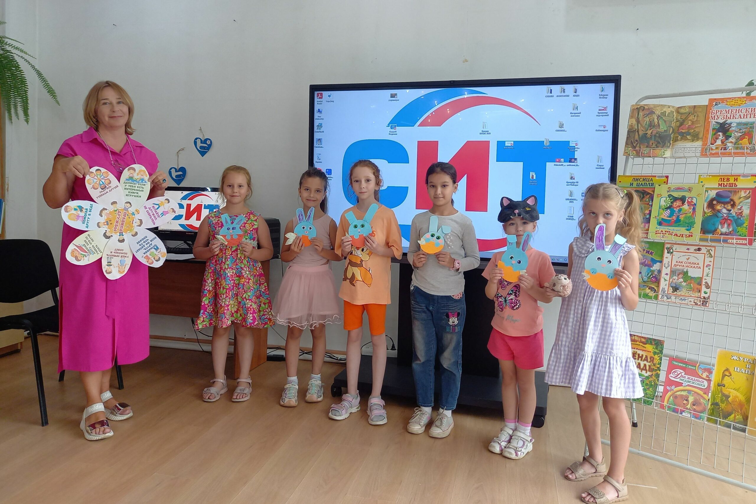 31 июля библиотека № 3 (ул. Хабаровская, 19) организовала для юных читателей творческую мастерскую «Давай дружить». Библиотекарь прочитала ребятам стихи Бориса Заходера из сборника «Мы друзья», сказки «О дружбе и верности», прослушали песню композитора Владимира Шаинского на слова Михаила Пляцковского «От улыбки».
