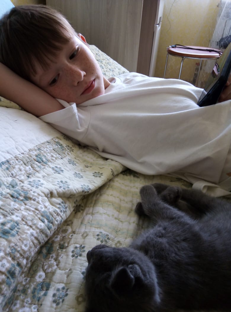 Если ему становится скучно, он начинает меня отвлекать. И тогда я играю с Гошей. Мне нравится ухаживать за ним, кормить его. Я очень привык к Гоше. В школе я скучаю по нему и хочу быстрее вернуться домой, чтобы поиграть с ним.