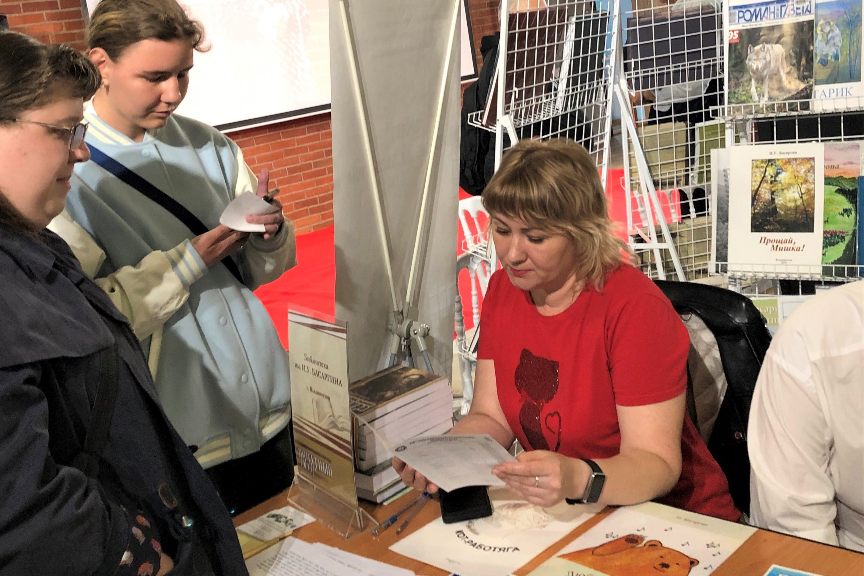Гостям предлагали унести с собой «кусочек басаргинской тайги» – цитаты из его произведений (было разобрано более 120 цитат). Многие брали визитки библиотеки, делились своими впечатлениями о прочитанных ранее произведениях писателя; с интересом просматривали книги, изданные библиотекой, были и те, кто читал рассказы, не отходя от стенда. Несколько издательств и авторов подарили библиотеке им. И.У. Басаргина свои новые книги — так, Олег Николаевич Вороной, известный в крае писатель, исследователь, преподнес с дарственной надписью книгу «Жар-зверь» о реальных встречах тигра и человека, отношениях между ними.