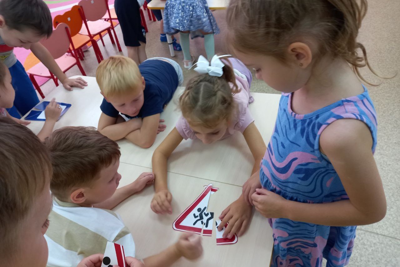 Встреча несла информационно-развлекательный характер, через игры «Разрешается-запрещается», «Вопросики» ребята вспомнили те правила, которые уже знают, с энтузиазмом рассказали о том, что никак нельзя играть в мяч на остановке, перебегать дорогу перед близко идущим транспортом, а также как необходимо уважать правила дорожного движения. Послушали сказку «Марта и Чичи идут в парк», рассуждая, где можно переходить дорогу, если нет светофора. Потом ребятам было предложено собрать дорожные пазлы. Пазлы оказались дорожными знаками, собрав которые дети узнали о значении знаков.
