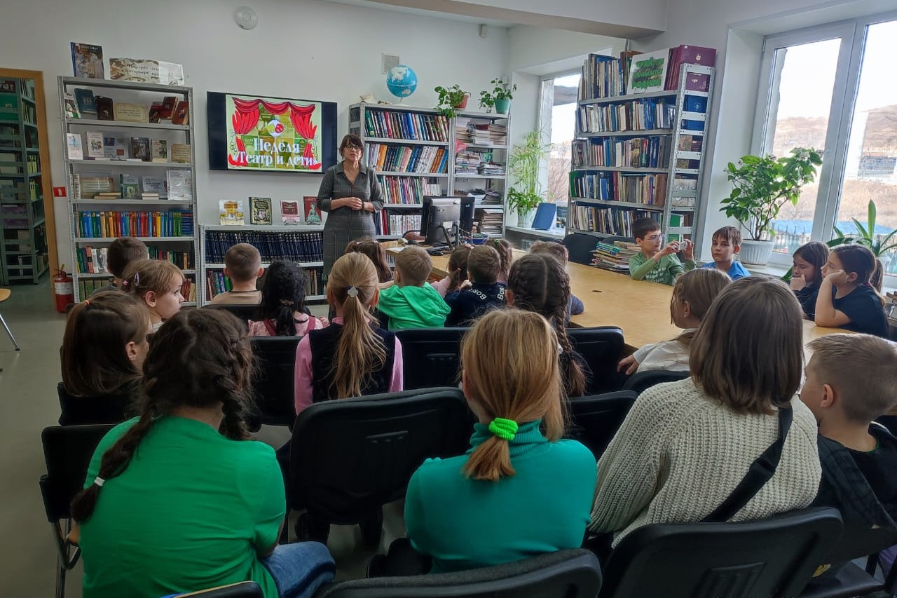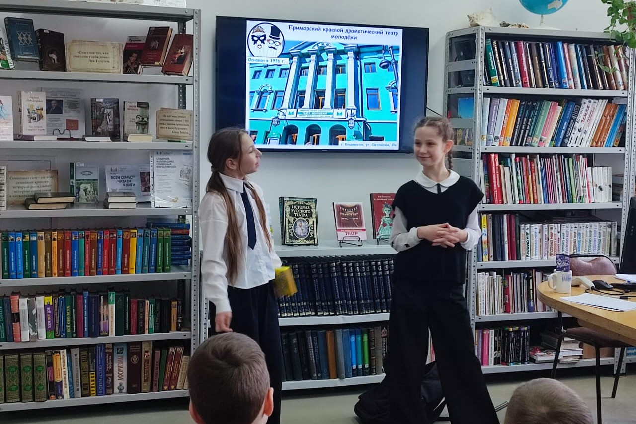 В библиотеке № 16 совместно с театральной студией «Апельсин», руководитель студии педагог-организатор М. А. Попова постарались приоткрыть загадочные театральные кулисы для детей. Ведь не секрет, что настоящими театральными ценителями становятся именно те, кто еще в детстве смог ощутить неповторимую атмосферу театра. Активными зрителями были учащиеся начальной школы СОШ № 43 и дошкольники ДОУ № 182. Библиотекари познакомили ребят с историей театров города Владивостока: Приморского краевого театра кукол, Приморского академического краевого драматического театра имени М. Горького, Приморской сцены Мариинского театра, Драматического театра Тихоокеанского Флота, Приморского краевого драматического театра молодёжи.