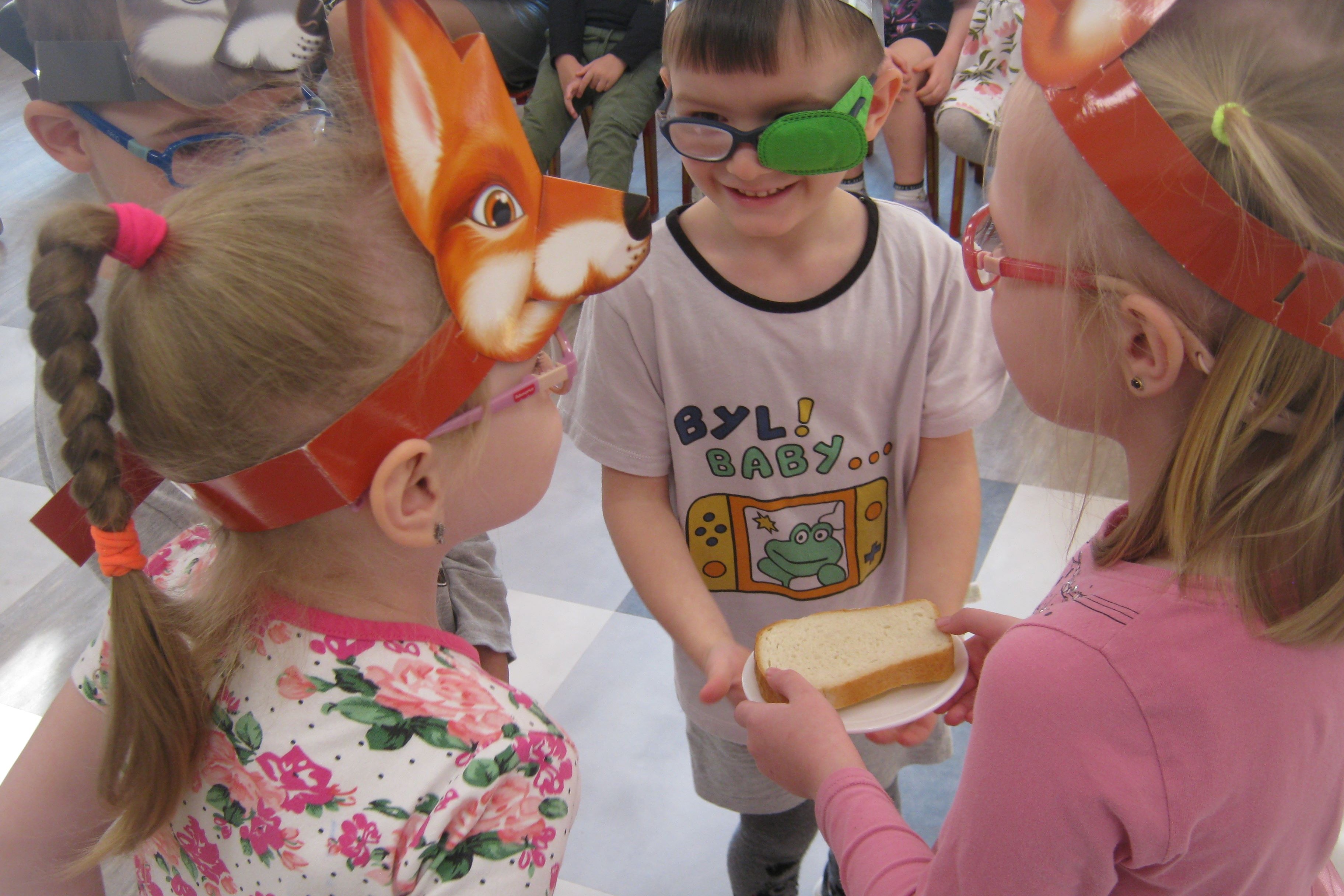 Самые маленькие участники мероприятия – детсадовцы, они-то и стали настоящими актерами представления, школьники были зрители и так все трогательно получилось, что в конце мини-сценки малышей наградили настоящей овацией. Мини-спектакль разыграли: Сонечка – белочка, Егорка – зайчик, Милана – хитрая лиса и Ваня – голодный волк, персонажи из русских народных сказок. Дети голосом и интонациями показывали и хитрость, и обман, и доверчивость, и доброту. Конечно, победила дружба, ведь все русские сказки с животными героями всегда имеют счастливый конец.
