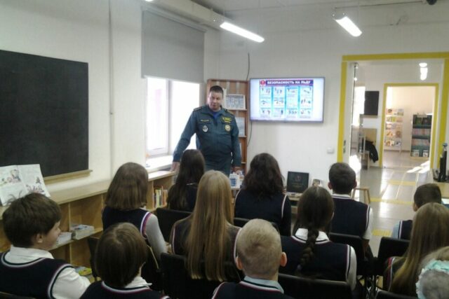 3 декабря в детской библиотеке № 5 (ул. Леонова, 21), для учеников 6 «А» класса СОШ № 6, госинспектор по маломерным судам Центра ГИМС ГУ МЧС России по Приморскому краю Евгений Александрович Козлов провёл урок безопасности «Осторожно, тонкий лёд!».