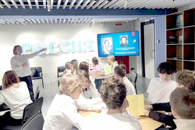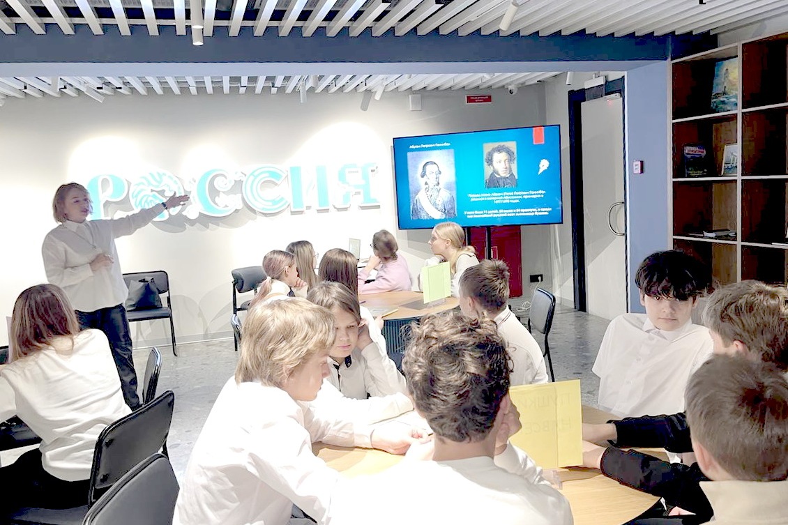 В Национальном центре «Россия» 2 декабря сотрудник библиотечной системы Владивостока Екатерина Саенко провела квиз по творчеству А.С. Пушкина для учащихся 6 «А» класса Гимназии № 2 города Владивостока.