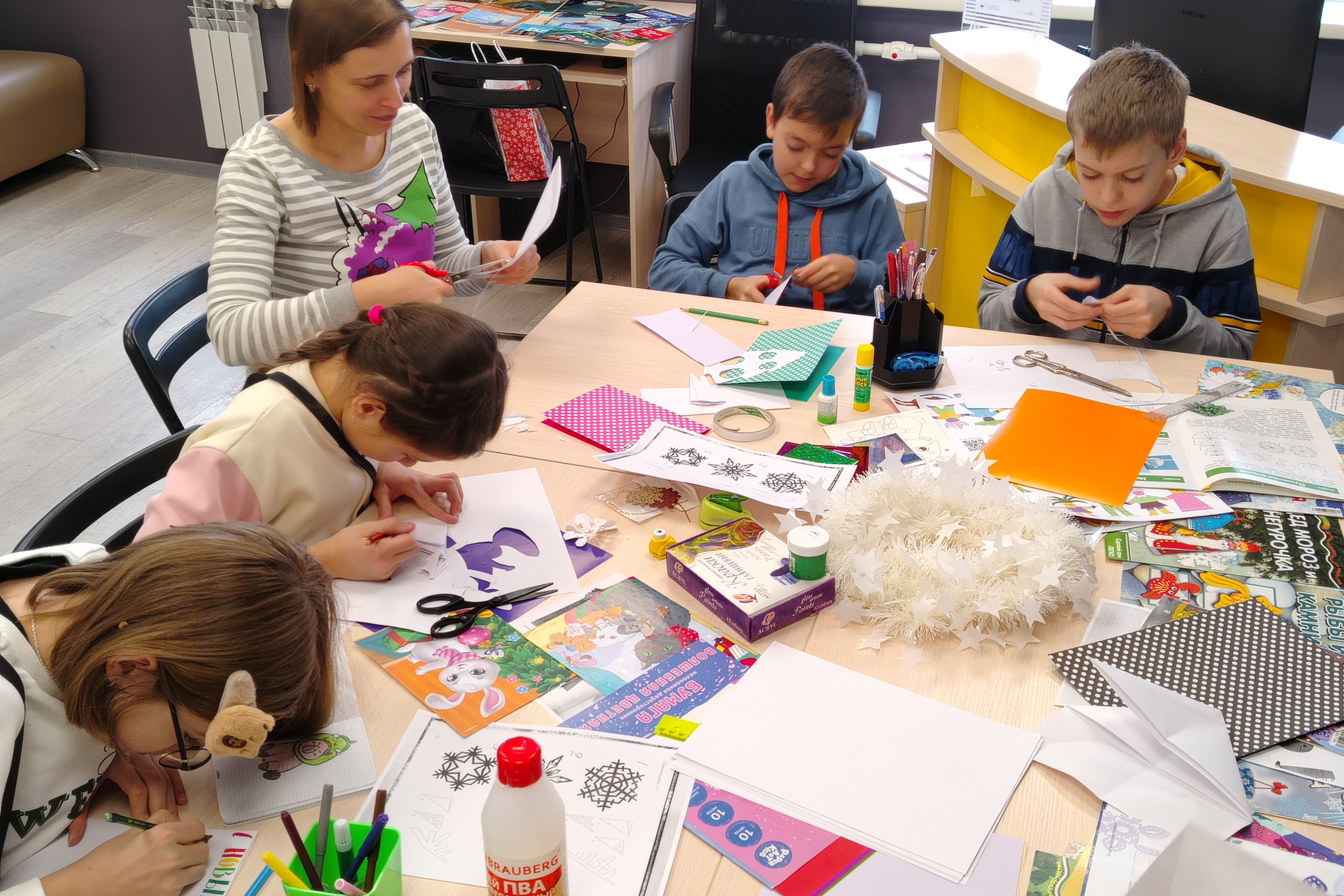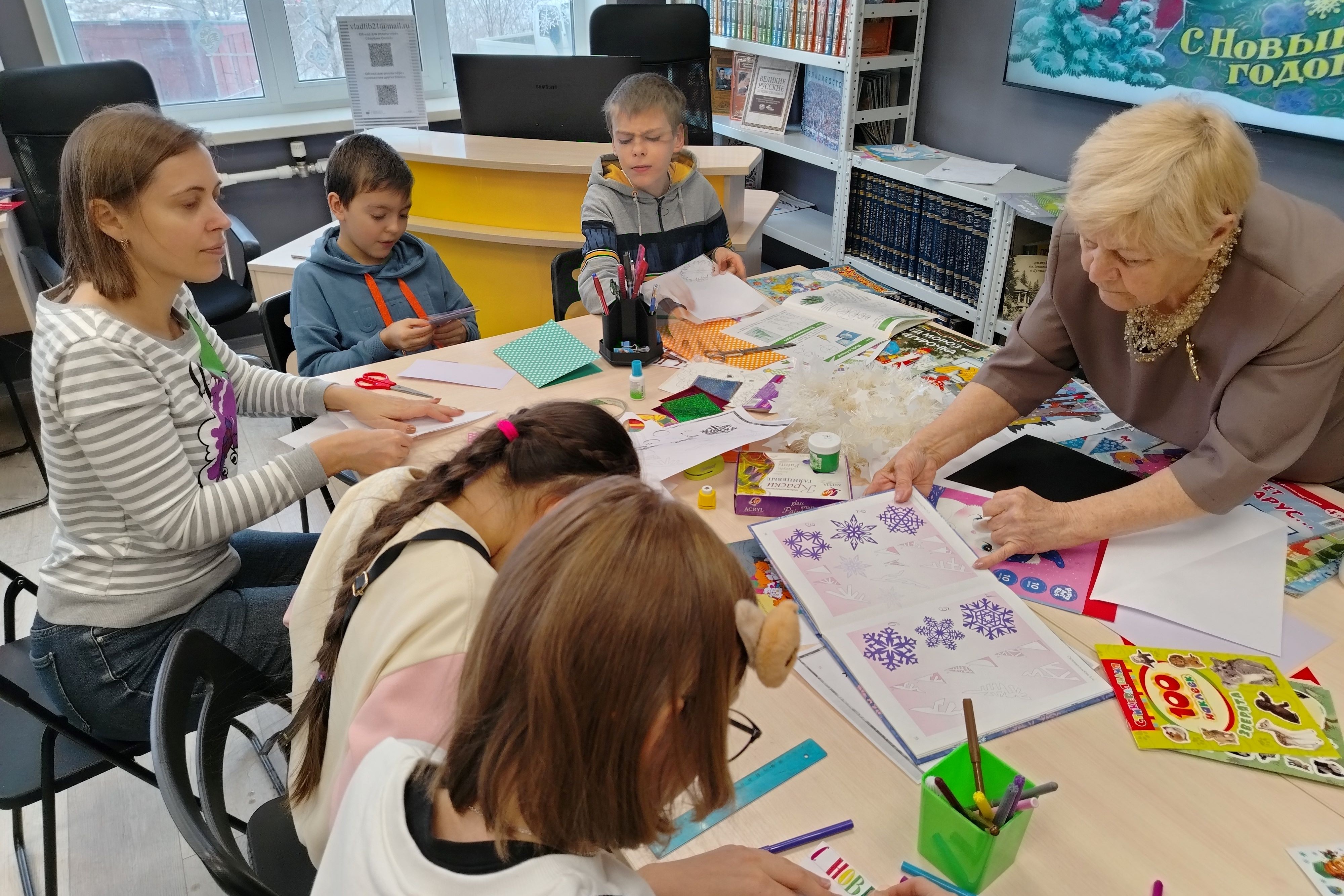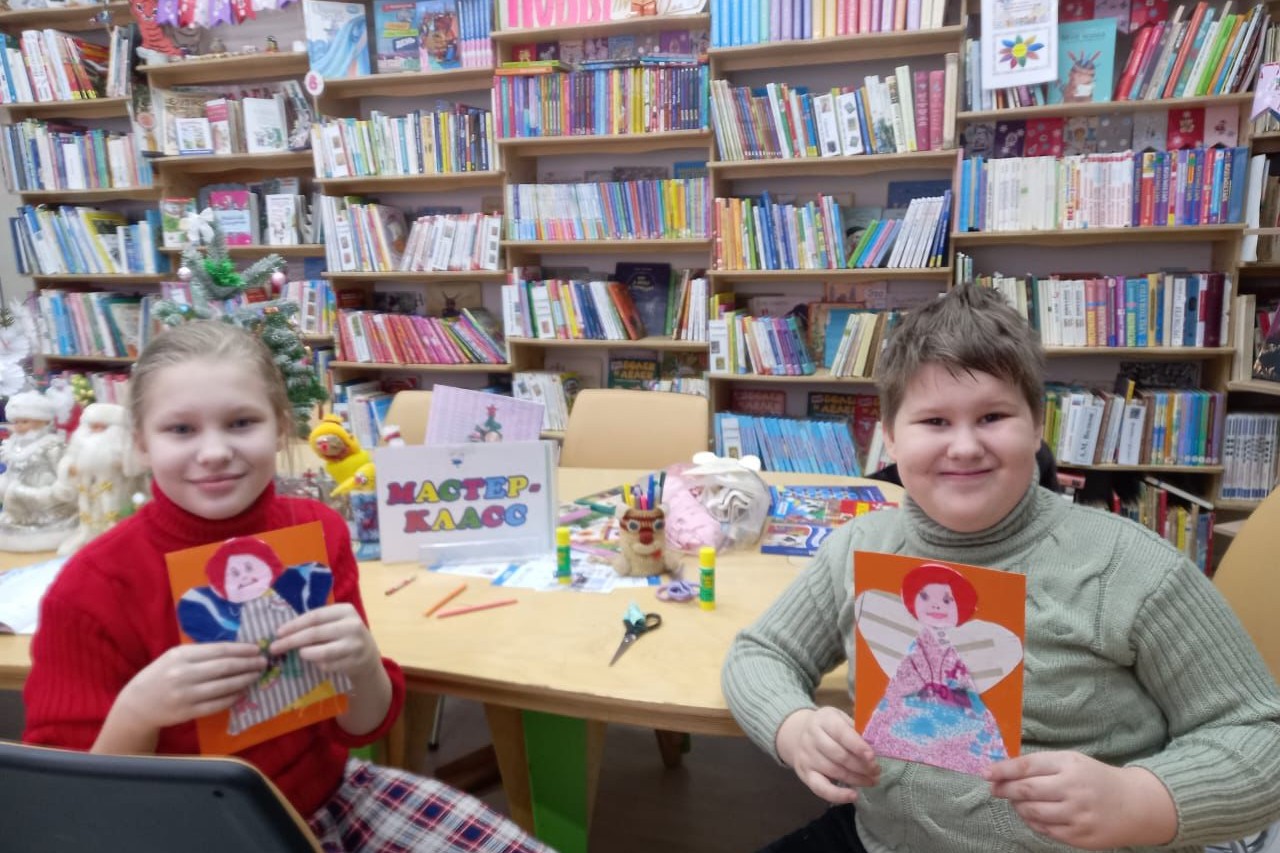 Один из каникулярных дней, 5 января, школьники могли провести в библиотеках, где им предложили принять участие в творческих мастерских, участвуя в которых они получили уроки творчества, и одновременно уроки доброты, любви и трудолюбия.