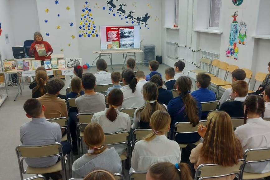 31 января в библиотеке № 2 для школьников 6-х классов МБДОУ № 70 прошел киноурок. Для ребят была подготовлена выставка книг «Ленинград. Блокада. Память.», на которой были представлены произведения Юрия Яковлева, Сергея Алексеева, Анны Ахматовой и других авторов о подвиге Ленинграда.