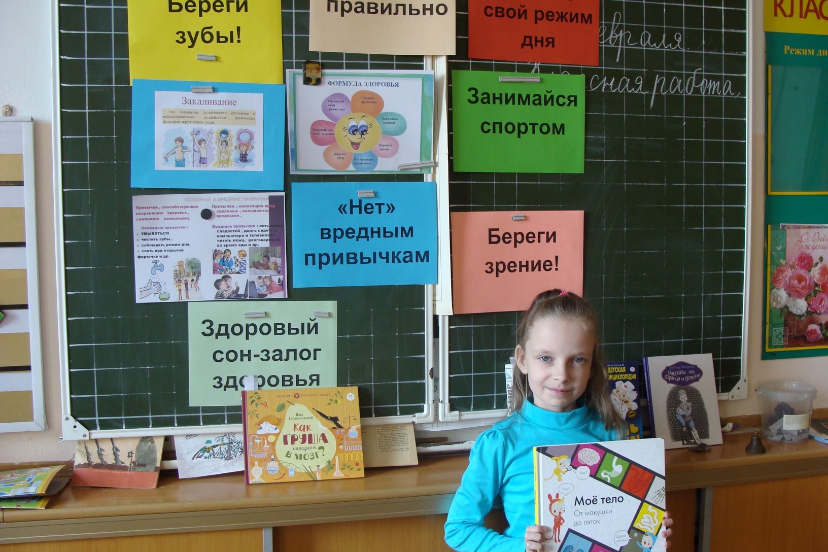 Что конкретно нужно сделать для укрепления своего здоровья. Всем известные тезисы вывесили на доску: питайся правильно, занимайся спортом, береги зрение, «Нет» вредным привычкам, закаляйся, организуй свой режим дня, береги зубы, здоровый сон-залог здоровья. Второклашки активно рассказывали о том, что они едят на завтрак, какие фрукты и овощи любят, кто «зависает» в телефоне более 40 минут в день, кто ходит купался в холодной воде и многое другое.
