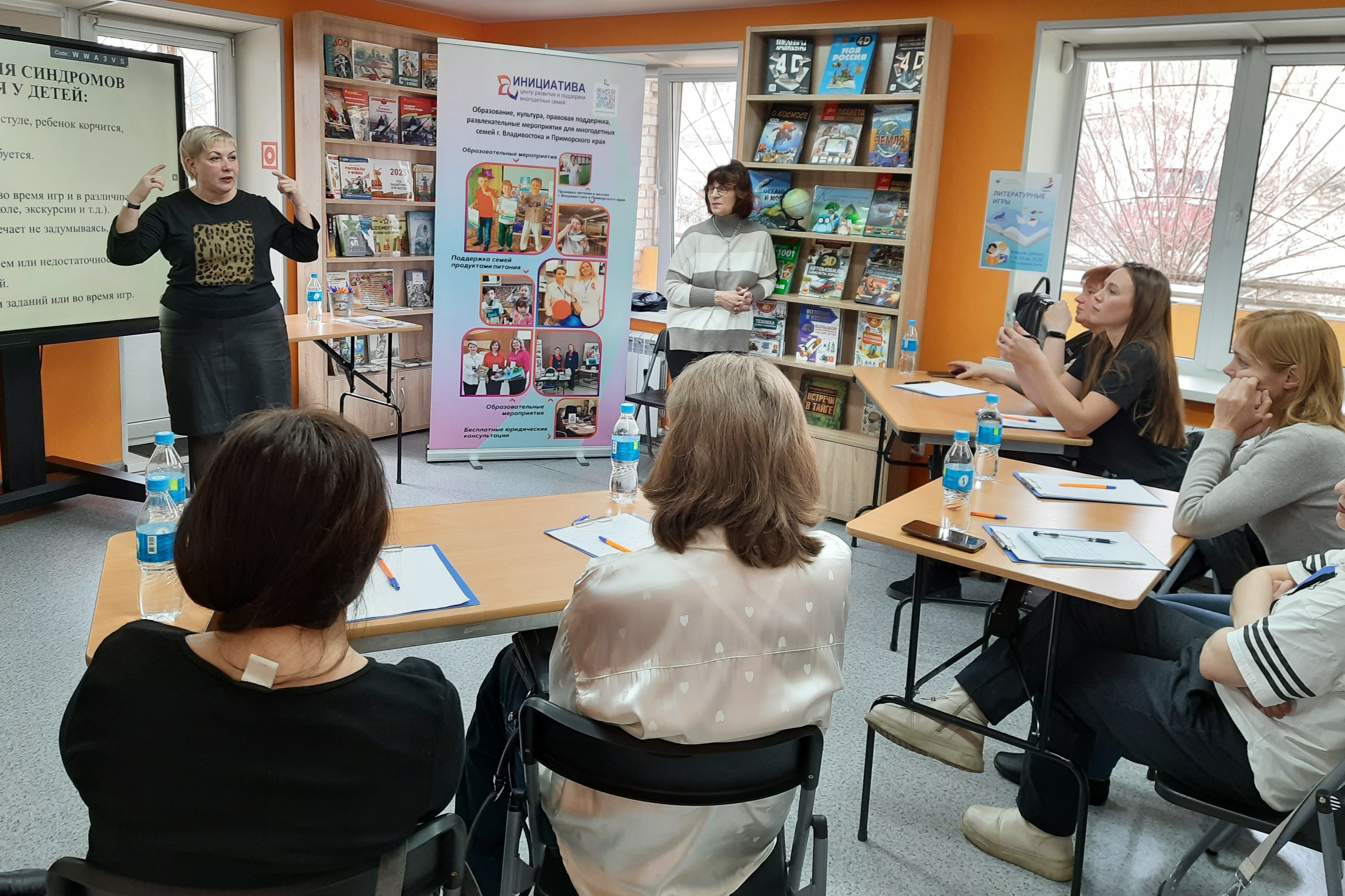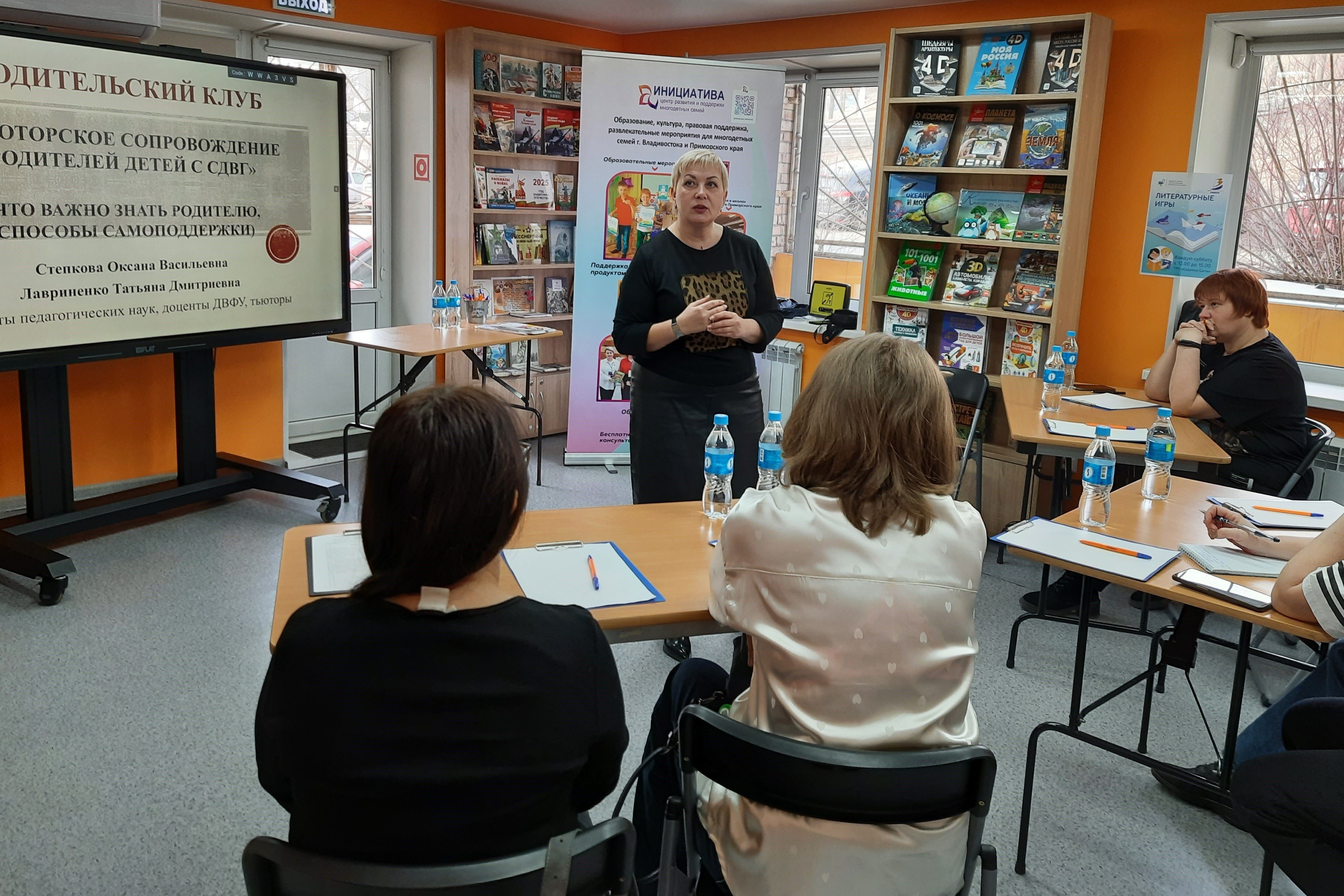 1 марта в библиотеке № 20 прошла лекция «Тьюторское сопровождение родителей детей с СДВГ». Организатор мероприятия: Центр развития и поддержки многодетных семей АНО «Инициатива». Лекцию провели Степкова Оксана Васильевна и Лавриненко Татьяна Дмитриевна – кандидаты педагогических наук, доценты ДВФУ.